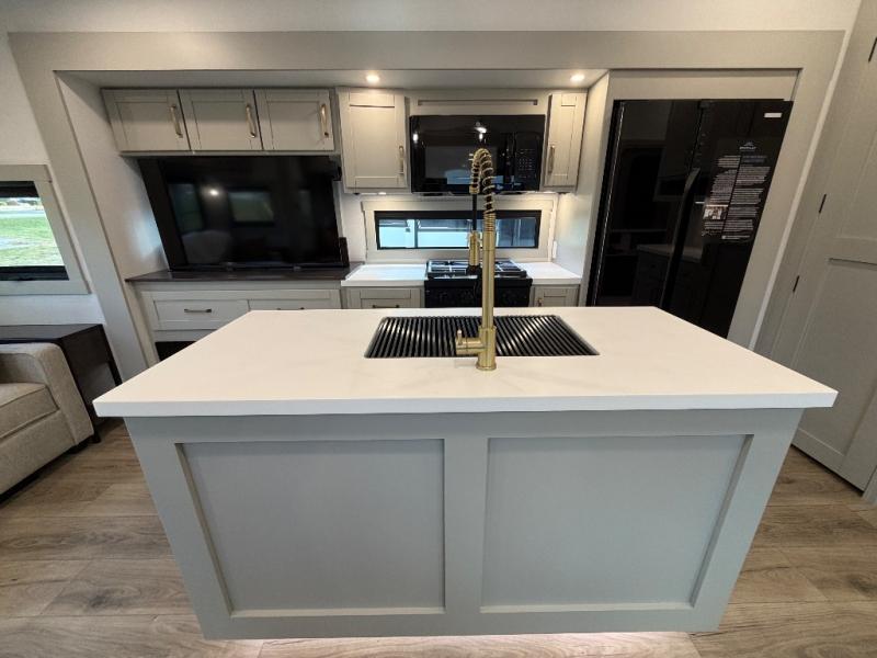 The Brinkley Model Z 3610 blends luxury, innovation, and family-focused design with a bonus room, upscale kitchen, and a comfortable rear living area. With impressive storage, modern tech touches, and a Curt TCS upgraded suspension system, this fifth wheel is built for extended stays, remote work, and unforgettable family trips.