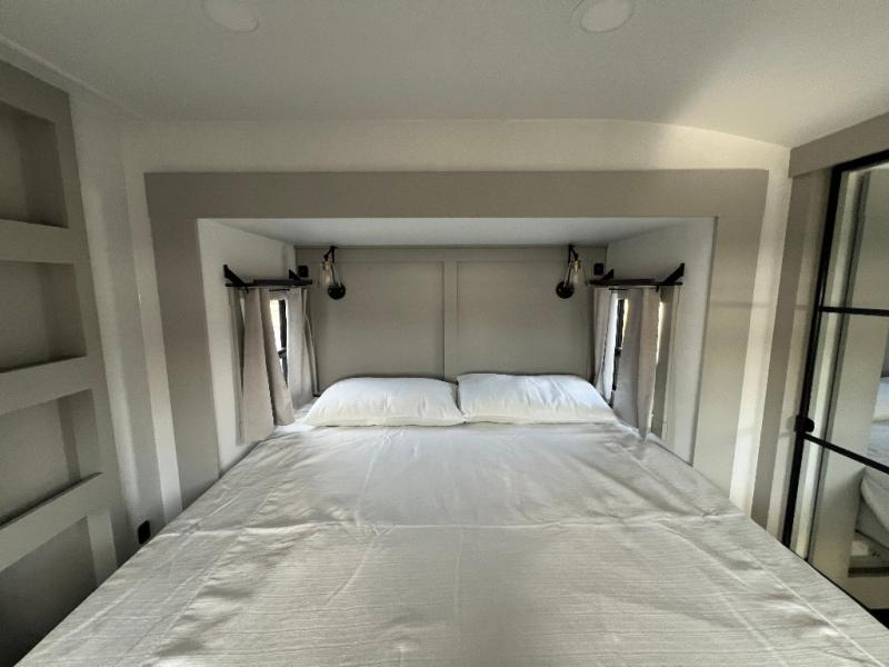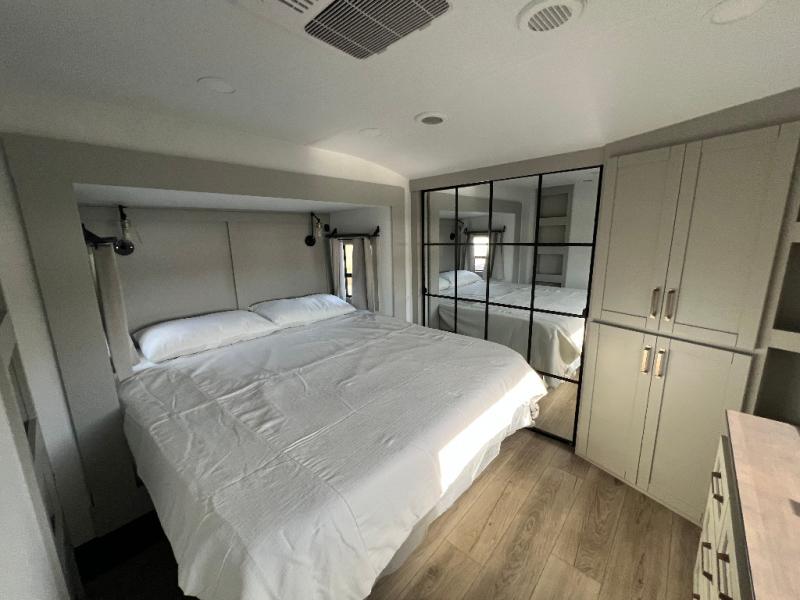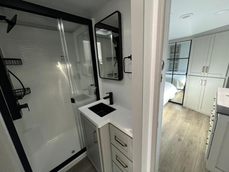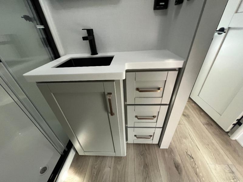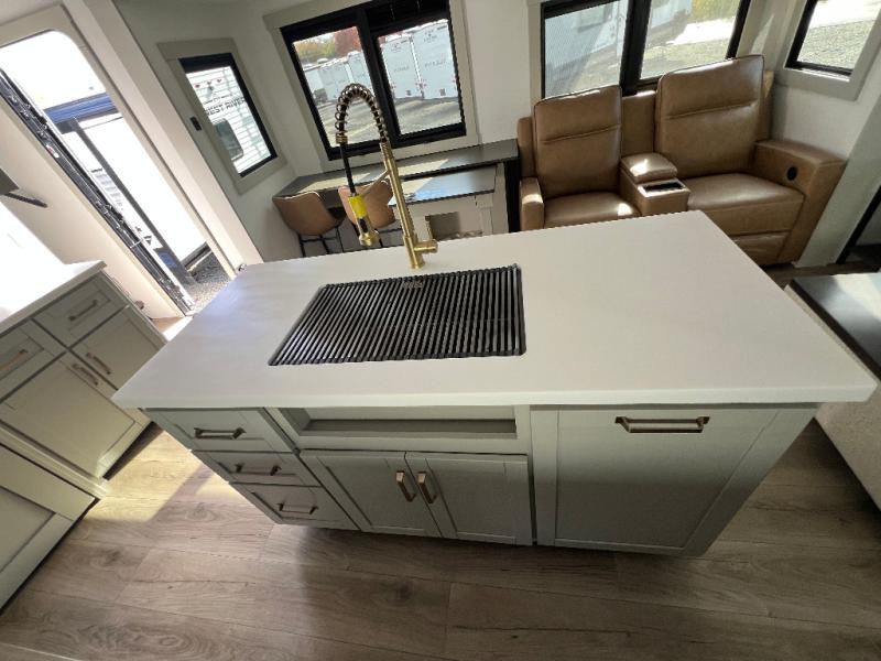 The Brinkley mid-profile Model Z fifth wheels bring you clean lines and an upscale look with plenty of style and exciting new features like the industry first brass plumbing connections. These units also feature an automotive grade front cap, plenty of exterior storage, dual exterior hot and cold showers, and wide stance leveling jacks for easy set up. Residential frameless windows provide a clean look and beautiful views, and ample electrical outlets and 6 USB/USB-C outlets allow all of your electronics and appliances to easily be used and charged.