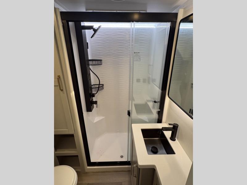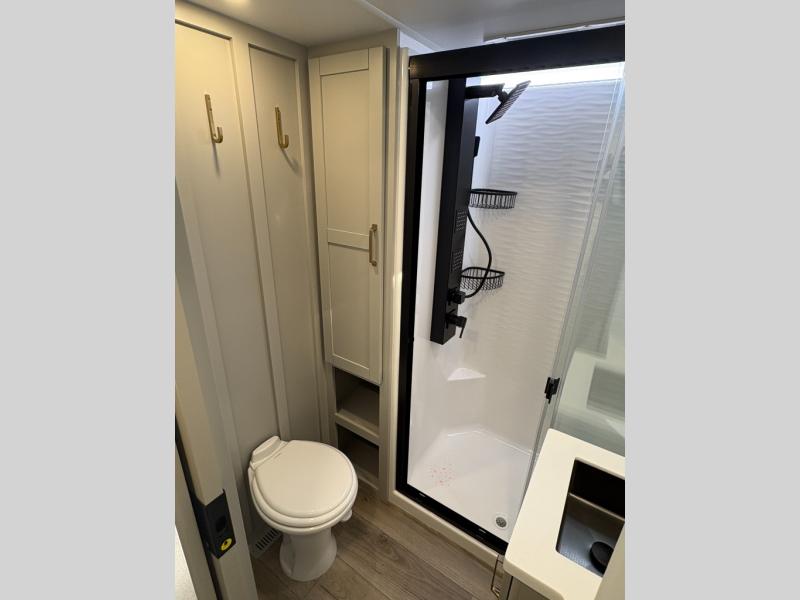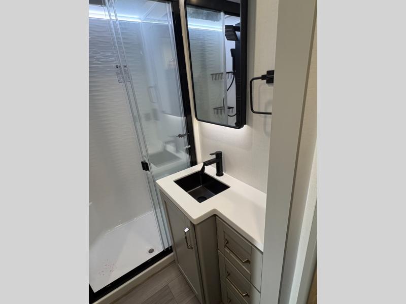 The Brinkley mid-profile Model Z fifth wheels bring you clean lines and an upscale look with plenty of style and exciting new features like the industry first brass plumbing connections. These units also feature an automotive grade front cap, plenty of exterior storage, dual exterior hot and cold showers, and wide stance leveling jacks for easy set up. Residential frameless windows provide a clean look and beautiful views, and ample electrical outlets and 6 USB/USB-C outlets allow all of your electronics and appliances to easily be used and charged.