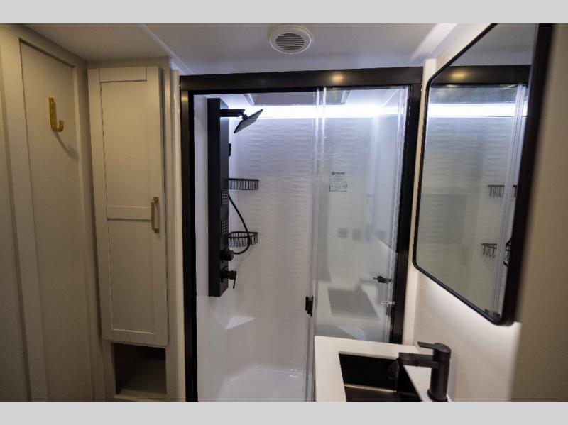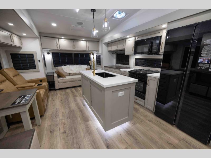 The Brinkley mid-profile Model Z fifth wheels bring you clean lines and an upscale look with plenty of style and exciting new features like the industry first brass plumbing connections. These units also feature an automotive grade front cap, plenty of exterior storage, dual exterior hot and cold showers, and wide stance leveling jacks for easy set up. Residential frameless windows provide a clean look and beautiful views, and ample electrical outlets and 6 USB/USB-C outlets allow all of your electronics and appliances to easily be used and charged.