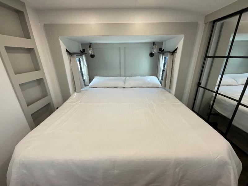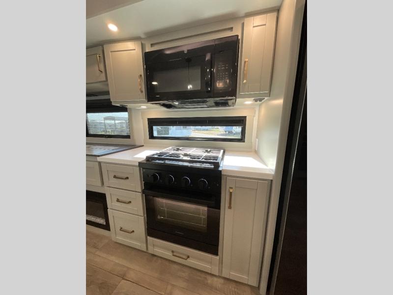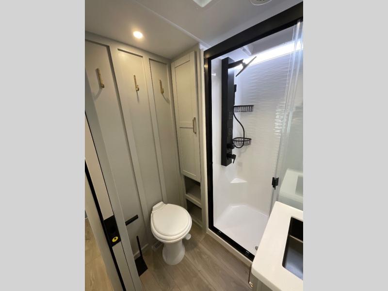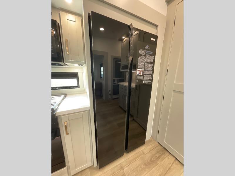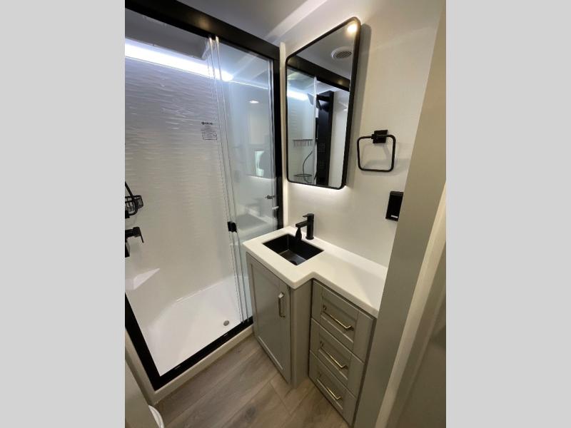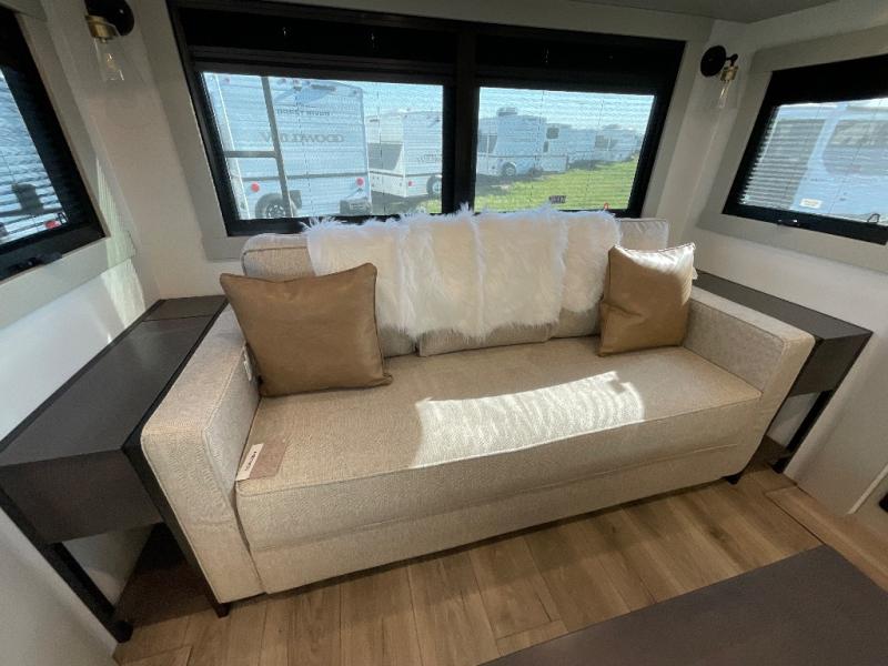 The Brinkley mid-profile Model Z fifth wheels bring you clean lines and an upscale look with plenty of style and exciting new features like the industry first brass plumbing connections. These units also feature an automotive grade front cap, plenty of exterior storage, dual exterior hot and cold showers, and wide stance leveling jacks for easy set up. Residential frameless windows provide a clean look and beautiful views, and ample electrical outlets and 6 USB/USB-C outlets allow all of your electronics and appliances to easily be used and charged.