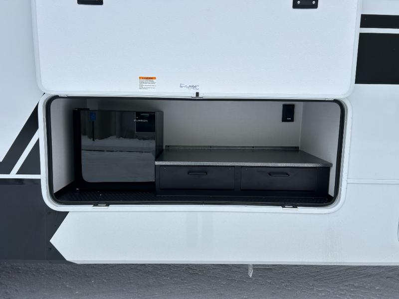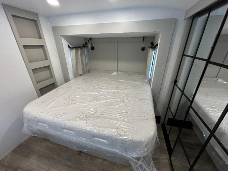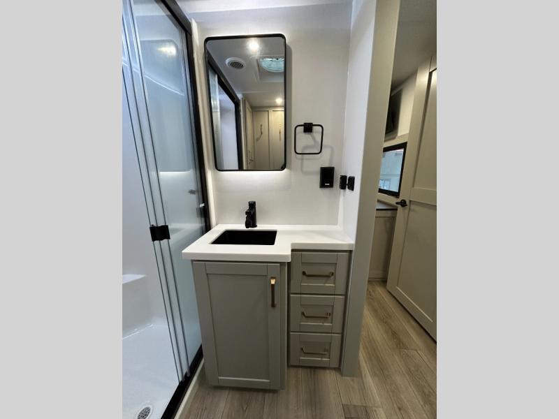 The Brinkley mid-profile Model Z fifth wheels bring you clean lines and an upscale look with plenty of style and exciting new features like the industry first brass plumbing connections. These units also feature an automotive grade front cap, plenty of exterior storage, dual exterior hot and cold showers, and wide stance leveling jacks for easy set up. Residential frameless windows provide a clean look and beautiful views, and ample electrical outlets and 6 USB/USB-C outlets allow all of your electronics and appliances to easily be used and charged.