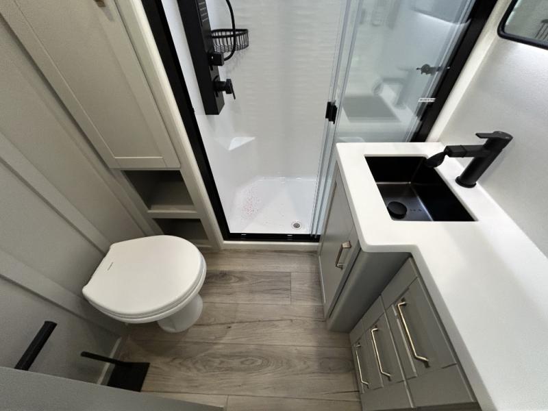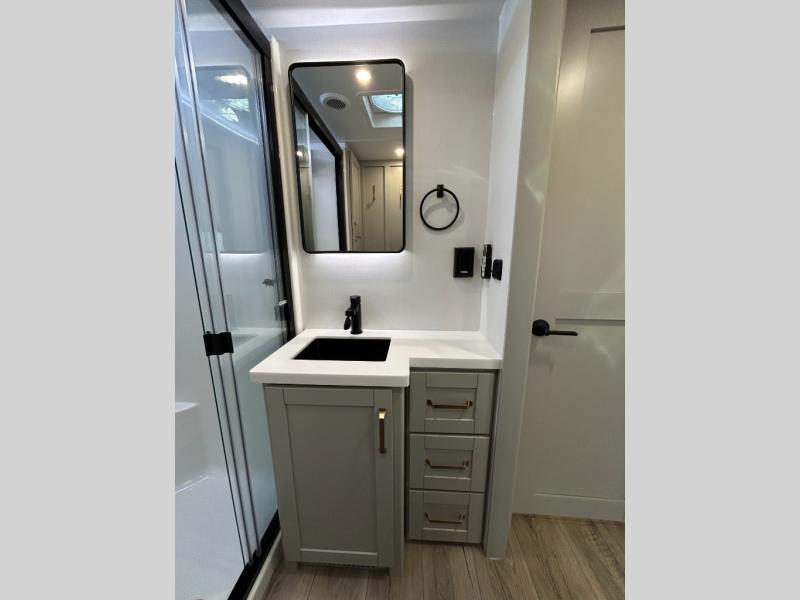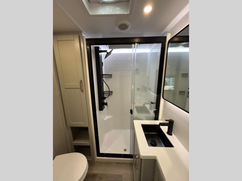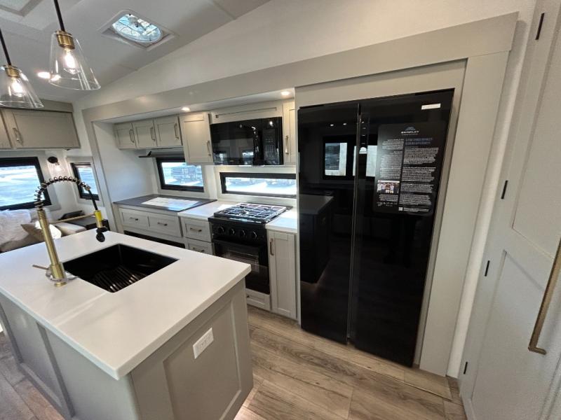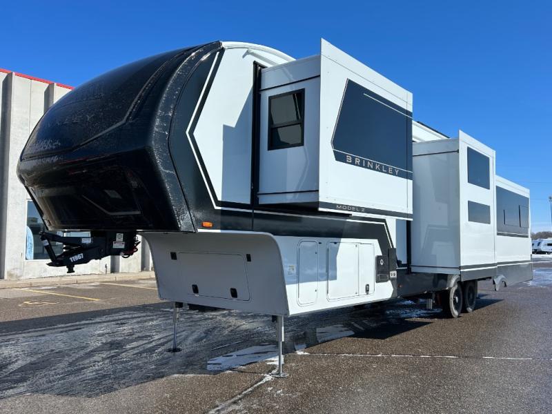 The Brinkley mid-profile Model Z fifth wheels bring you clean lines and an upscale look with plenty of style and exciting new features like the industry first brass plumbing connections. These units also feature an automotive grade front cap, plenty of exterior storage, dual exterior hot and cold showers, and wide stance leveling jacks for easy set up. Residential frameless windows provide a clean look and beautiful views, and ample electrical outlets and 6 USB/USB-C outlets allow all of your electronics and appliances to easily be used and charged.