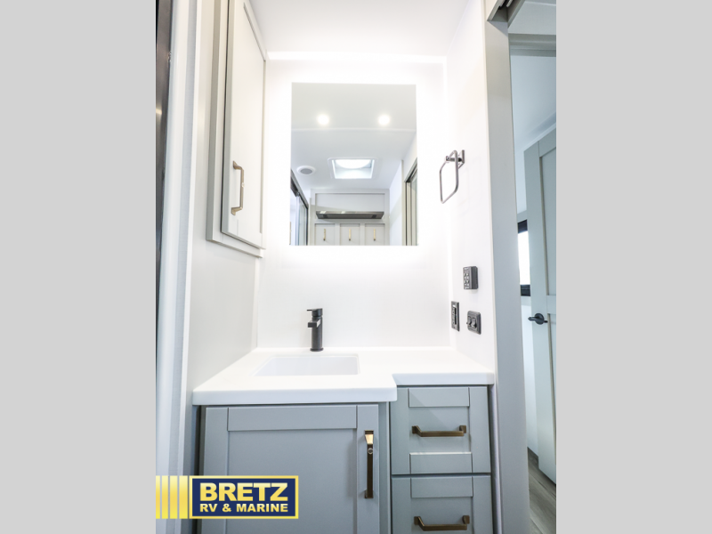 With any Model Z Air travel trailer by Brinkley, you will enjoy premium features at every turn. The industry-first low maintenance roof is sure to be appreciated, plus there are industry-first brass plumbing connections for excellent resistance to corrosion. The drop-frame chassis with over 45 cu. ft. of exterior storage will allow you to bring along camp gear galore, plus there are motion lighting and power outlets for added convenience! You'll also find two hot/cold showers outdoors, along with a 370-watt solar panel, a custom LP box with locked battery storage, and a premium utility center with a retractable 65' water hose to wash off mud from the lake. The interior is just as accommodating with its solid surface countertops, Brinkley CraftSense wood trim construction, integrated window screens and insulated blackout blinds, and the list of luxury features goes on!