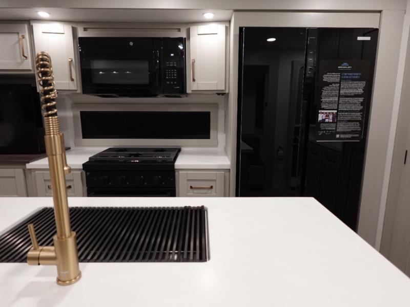 With any Model Z Air travel trailer by Brinkley, you will enjoy premium features at every turn. The industry-first low maintenance roof is sure to be appreciated, plus there are industry-first brass plumbing connections for excellent resistance to corrosion. The drop-frame chassis with ample exterior storage will allow you to bring along camp gear galore, plus there are motion lighting and power outlets for added convenience! You'll also find two hot/cold showers outdoors, along with a 370-watt solar panel, a custom LP box with locked battery storage, and a premium utility center with a retractable 65' water hose to wash off mud from the lake. The interior is just as accommodating with its solid surface countertops, Brinkley CraftSense wood trim construction, integrated window screens and insulated blackout blinds, and the list of luxury features goes on!