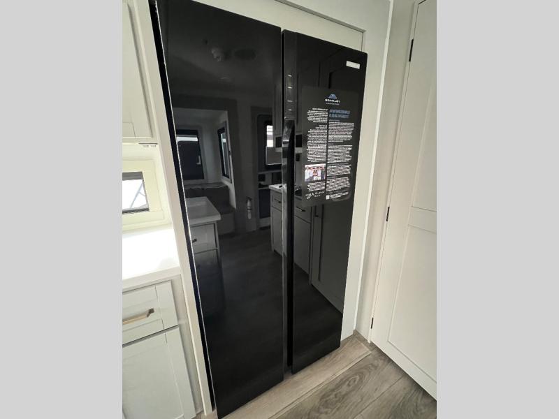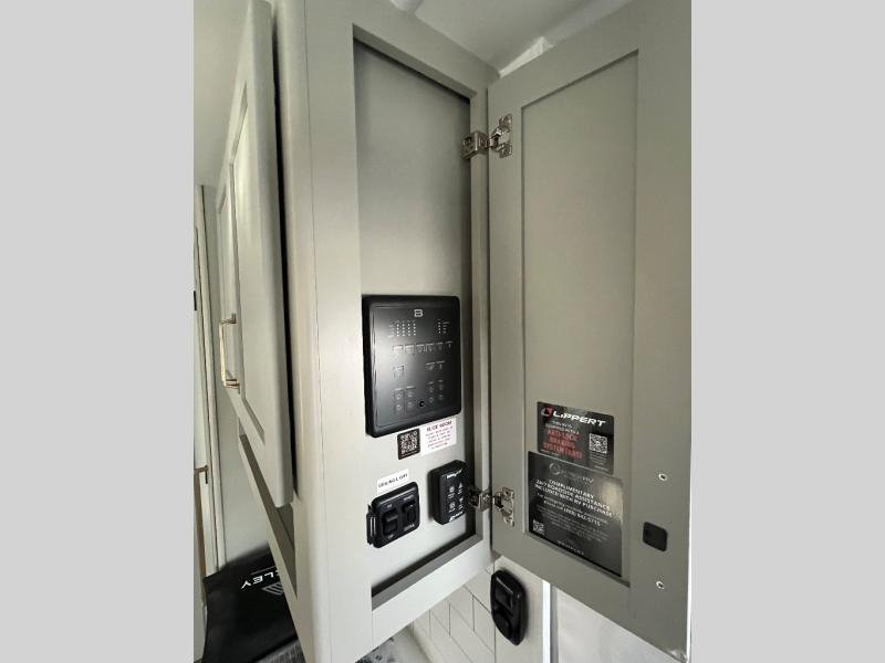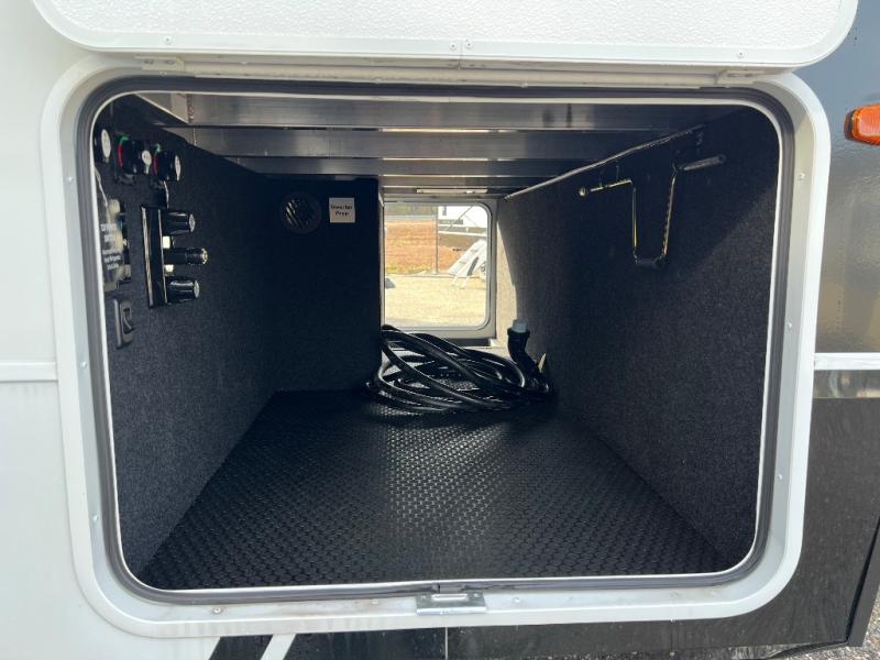 With any Model Z Air travel trailer by Brinkley, you will enjoy premium features at every turn. The industry-first low maintenance roof is sure to be appreciated, plus there are industry-first brass plumbing connections for excellent resistance to corrosion. The drop-frame chassis with ample exterior storage will allow you to bring along camp gear galore, plus there are motion lighting and power outlets for added convenience! You'll also find two hot/cold showers outdoors, along with a 370-watt solar panel, a custom LP box with locked battery storage, and a premium utility center with a retractable 65' water hose to wash off mud from the lake. The interior is just as accommodating with its solid surface countertops, Brinkley CraftSense wood trim construction, integrated window screens and insulated blackout blinds, and the list of luxury features goes on!