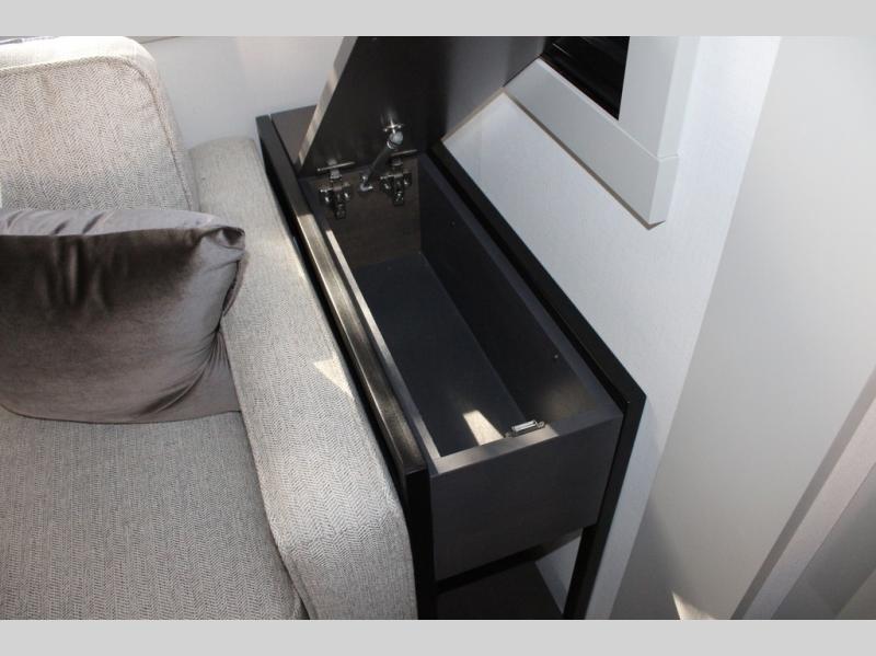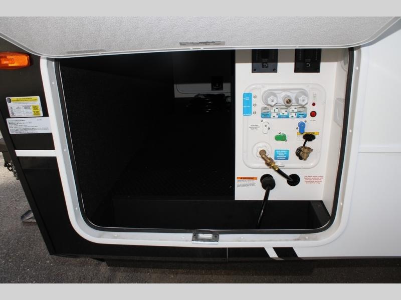 With any Model Z Air travel trailer by Brinkley, you will enjoy premium features at every turn. The industry-first low maintenance roof is sure to be appreciated, plus there are industry-first brass plumbing connections for excellent resistance to corrosion. The drop-frame chassis with ample exterior storage will allow you to bring along camp gear galore, plus there are motion lighting and power outlets for added convenience! You'll also find two hot/cold showers outdoors, along with a 370-watt solar panel, a custom LP box with locked battery storage, and a premium utility center with a retractable 65' water hose to wash off mud from the lake. The interior is just as accommodating with its solid surface countertops, Brinkley CraftSense wood trim construction, integrated window screens and insulated blackout blinds, and the list of luxury features goes on!