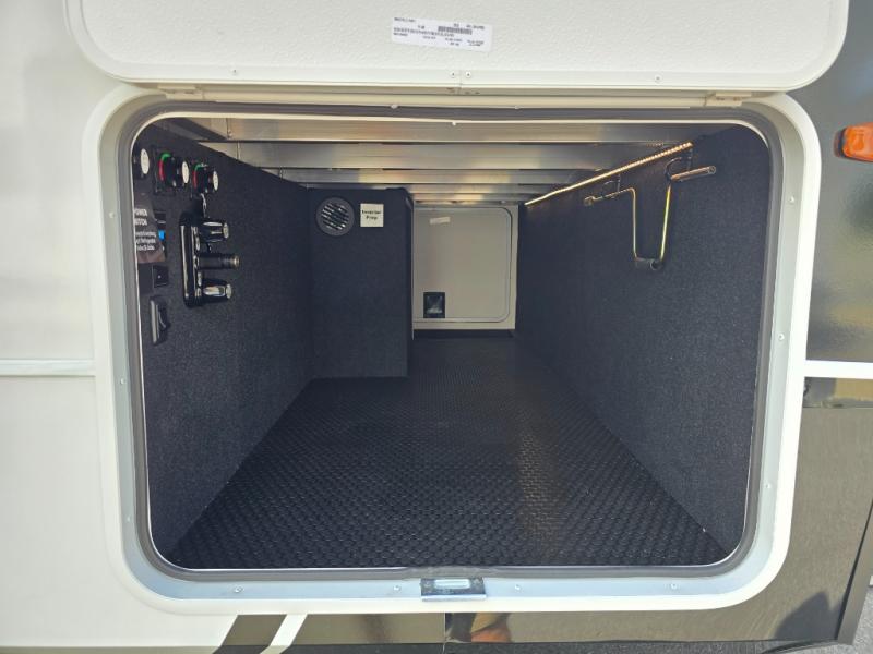 With any Model Z Air travel trailer by Brinkley, you will enjoy premium features at every turn. The industry-first low maintenance roof is sure to be appreciated, plus there are industry-first brass plumbing connections for excellent resistance to corrosion. The drop-frame chassis with ample exterior storage will allow you to bring along camp gear galore, plus there are motion lighting and power outlets for added convenience! You'll also find two hot/cold showers outdoors, along with a 370-watt solar panel, a custom LP box with locked battery storage, and a premium utility center with a retractable 65' water hose to wash off mud from the lake. The interior is just as accommodating with its solid surface countertops, Brinkley CraftSense wood trim construction, integrated window screens and insulated blackout blinds, and the list of luxury features goes on!