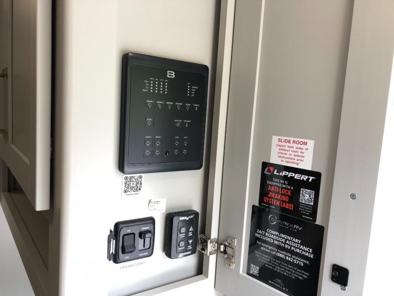 With any Model Z Air travel trailer by Brinkley, you will enjoy premium features at every turn. The industry-first low maintenance roof is sure to be appreciated, plus there are industry-first brass plumbing connections for excellent resistance to corrosion. The drop-frame chassis with ample exterior storage will allow you to bring along camp gear galore, plus there are motion lighting and power outlets for added convenience! You'll also find two hot/cold showers outdoors, along with a 370-watt solar panel, a custom LP box with locked battery storage, and a premium utility center with a retractable 65' water hose to wash off mud from the lake. The interior is just as accommodating with its solid surface countertops, Brinkley CraftSense wood trim construction, integrated window screens and insulated blackout blinds, and the list of luxury features goes on!