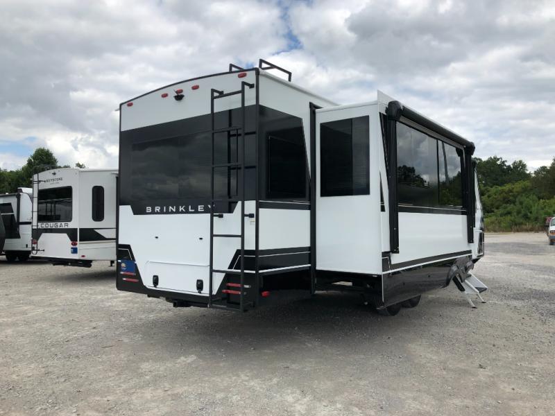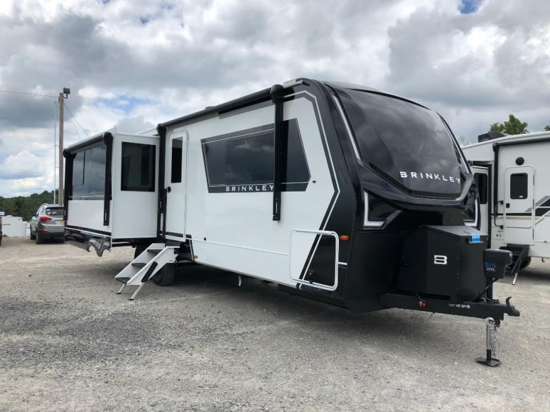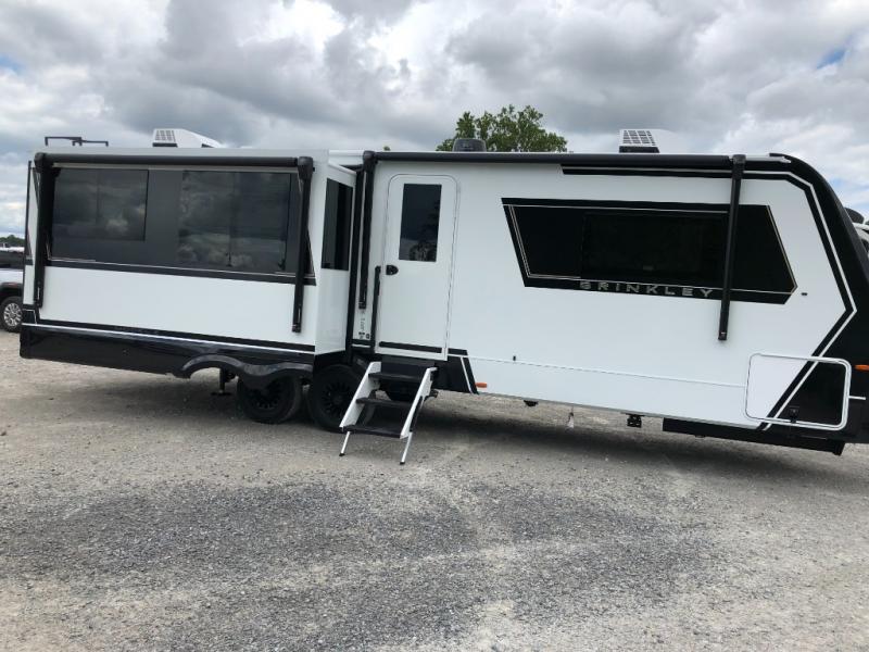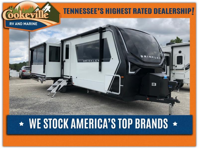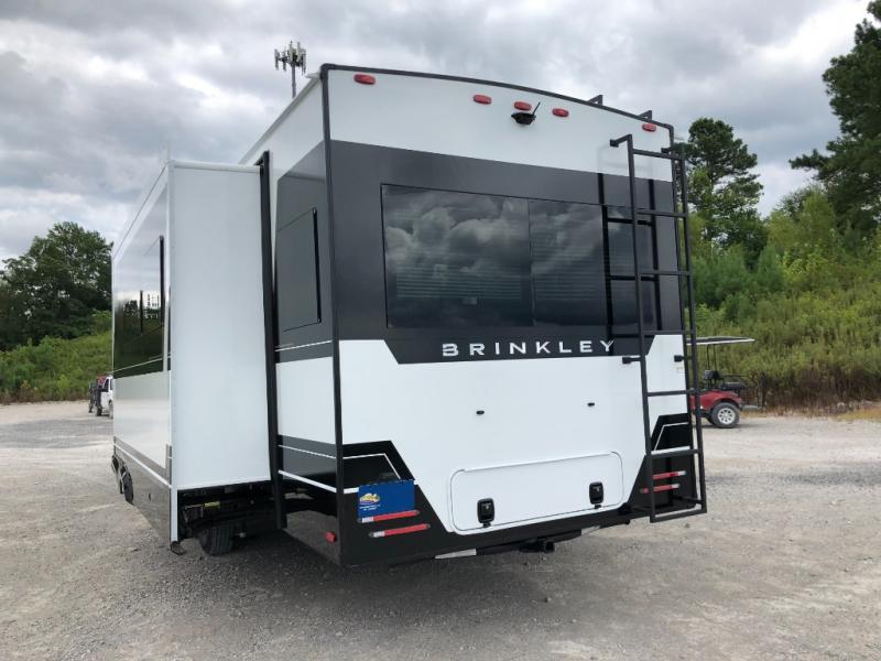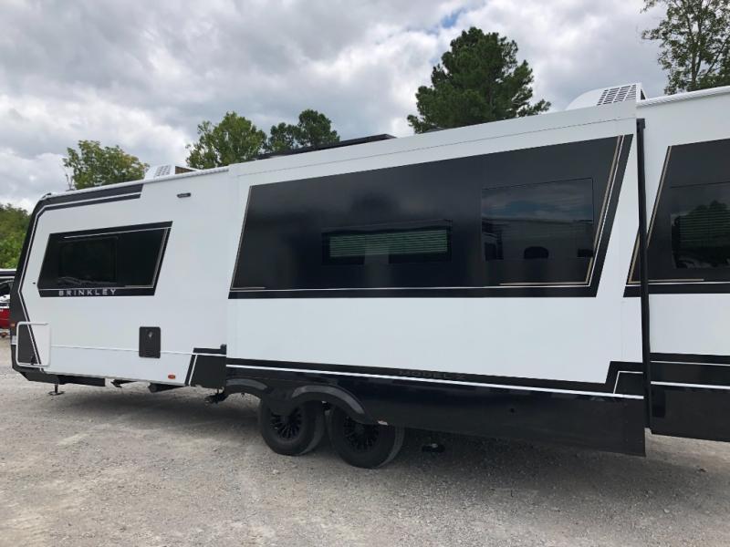 Luxury meets adventure in the Brinkley Model?Z?AIR?297: a 35' travel trailer with gourmet kitchen island, rear lounge with theater recliners, solar-ready, king bed-suite and cutting-edge comfort.