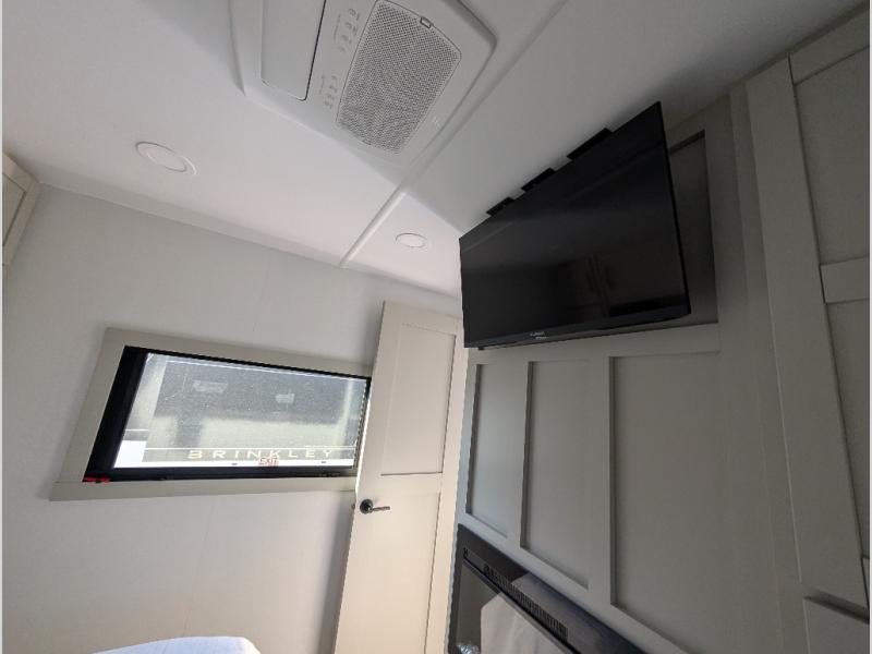 With any Model Z Air travel trailer by Brinkley, you will enjoy premium features at every turn. The industry-first low maintenance roof is sure to be appreciated, plus there are industry-first brass plumbing connections for excellent resistance to corrosion. The drop-frame chassis with a massive pass-through bay will allow you to bring along camp gear galore, plus there are motion lighting and power outlets for added convenience! You'll also find two hot/cold showers outdoors, along with a 370-watt solar panel and a premium utility center with a retractable 65' water hose to wash off mud from the lake. The interior is just as accommodating with its solid surface countertops, Brinkley CraftSense wood trim construction, integrated blackout window shades, and the list of luxury features goes on!