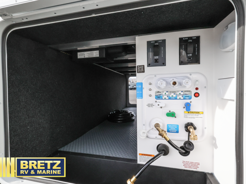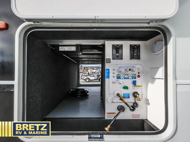 With any Model Z Air travel trailer by Brinkley, you will enjoy premium features at every turn. The industry-first low maintenance roof is sure to be appreciated, plus there are industry-first brass plumbing connections for excellent resistance to corrosion. The drop-frame chassis with over 100 cu. ft. of exterior storage will allow you to bring along camp gear galore, plus there are motion lighting and power outlets for added convenience! You'll also find two hot/cold showers outdoors, along with a 370-watt solar panel, a custom LP box with locked battery storage, and a premium utility center with a retractable 65' water hose to wash off mud from the lake. The interior is just as accommodating with its solid surface countertops, Brinkley CraftSense wood trim construction, integrated window screens and insulated blackout blinds, and the list of luxury features goes on!