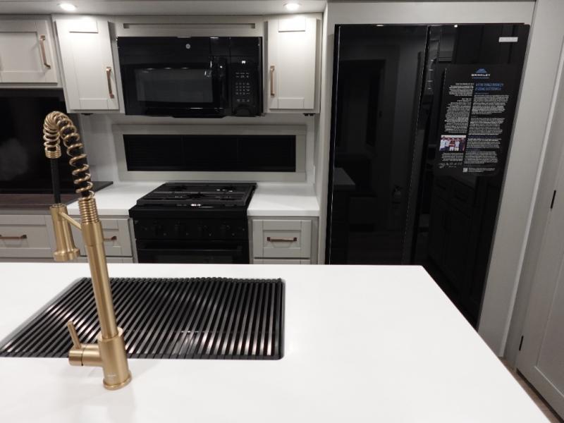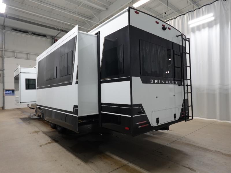 With any Model Z Air travel trailer by Brinkley, you will enjoy premium features at every turn. The industry-first low maintenance roof is sure to be appreciated, plus there are industry-first brass plumbing connections for excellent resistance to corrosion. The drop-frame chassis with over 100 cu. ft. of exterior storage will allow you to bring along camp gear galore, plus there are motion lighting and power outlets for added convenience! You'll also find two hot/cold showers outdoors, along with a 370-watt solar panel, a custom LP box with locked battery storage, and a premium utility center with a retractable 65' water hose to wash off mud from the lake. The interior is just as accommodating with its solid surface countertops, Brinkley CraftSense wood trim construction, integrated window screens and insulated blackout blinds, and the list of luxury features goes on!