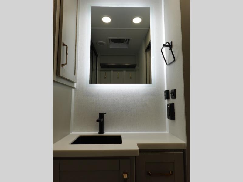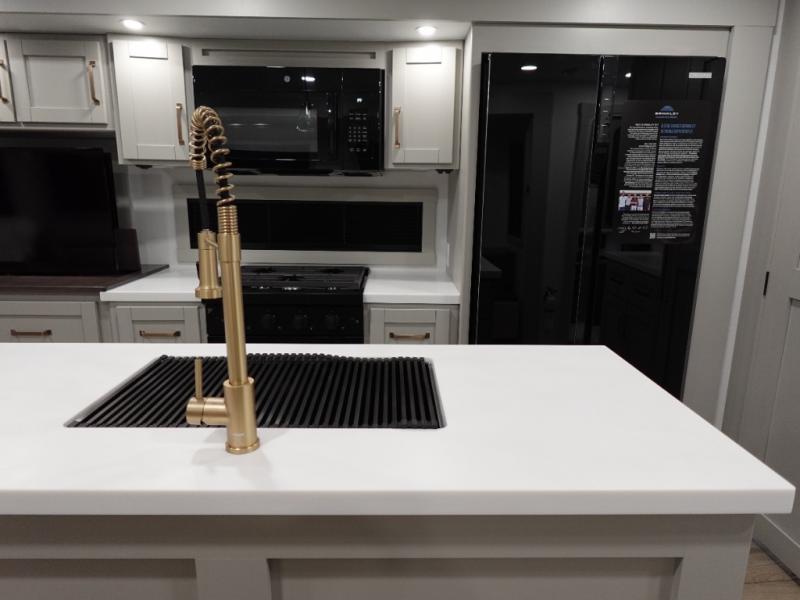 With any Model Z Air travel trailer by Brinkley, you will enjoy premium features at every turn. The industry-first low maintenance roof is sure to be appreciated, plus there are industry-first brass plumbing connections for excellent resistance to corrosion. The drop-frame chassis with over 100 cu. ft. of exterior storage will allow you to bring along camp gear galore, plus there are motion lighting and power outlets for added convenience! You'll also find two hot/cold showers outdoors, along with a 370-watt solar panel, a custom LP box with locked battery storage, and a premium utility center with a retractable 65' water hose to wash off mud from the lake. The interior is just as accommodating with its solid surface countertops, Brinkley CraftSense wood trim construction, integrated window screens and insulated blackout blinds, and the list of luxury features goes on!