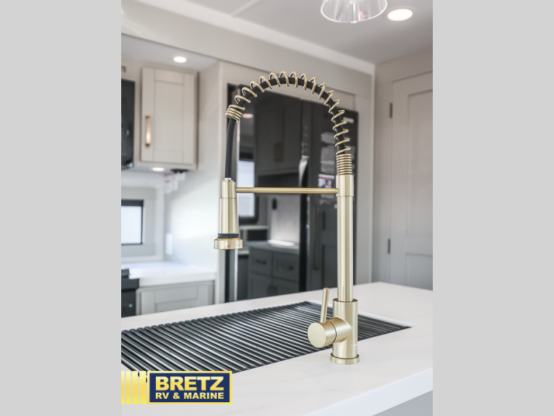 With any Model Z Air travel trailer by Brinkley, you will enjoy premium features at every turn. The industry-first low maintenance roof is sure to be appreciated, plus there are industry-first brass plumbing connections for excellent resistance to corrosion. The drop-frame chassis with over 100 cu. ft. of exterior storage will allow you to bring along camp gear galore, plus there are motion lighting and power outlets for added convenience! You'll also find two hot/cold showers outdoors, along with a 370-watt solar panel, a custom LP box with locked battery storage, and a premium utility center with a retractable 65' water hose to wash off mud from the lake. The interior is just as accommodating with its solid surface countertops, Brinkley CraftSense wood trim construction, integrated window screens and insulated blackout blinds, and the list of luxury features goes on!