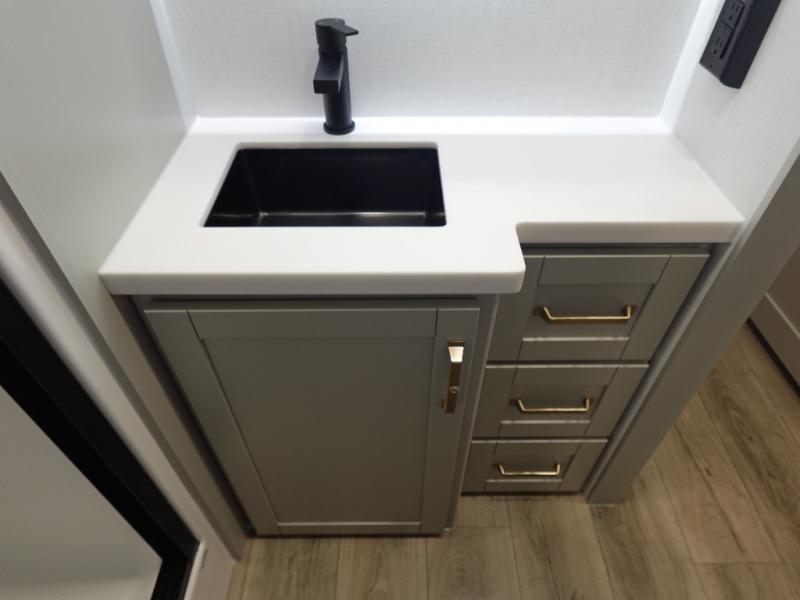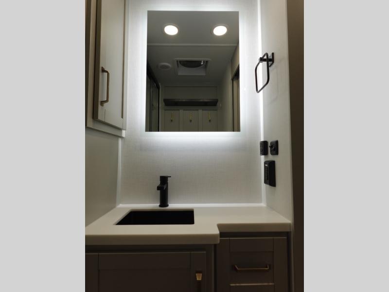 With any Model Z Air travel trailer by Brinkley, you will enjoy premium features at every turn. The industry-first low maintenance roof is sure to be appreciated, plus there are industry-first brass plumbing connections for excellent resistance to corrosion. The drop-frame chassis with over 100 cu. ft. of exterior storage will allow you to bring along camp gear galore, plus there are motion lighting and power outlets for added convenience! You'll also find two hot/cold showers outdoors, along with a 370-watt solar panel, a custom LP box with locked battery storage, and a premium utility center with a retractable 65' water hose to wash off mud from the lake. The interior is just as accommodating with its solid surface countertops, Brinkley CraftSense wood trim construction, integrated window screens and insulated blackout blinds, and the list of luxury features goes on!