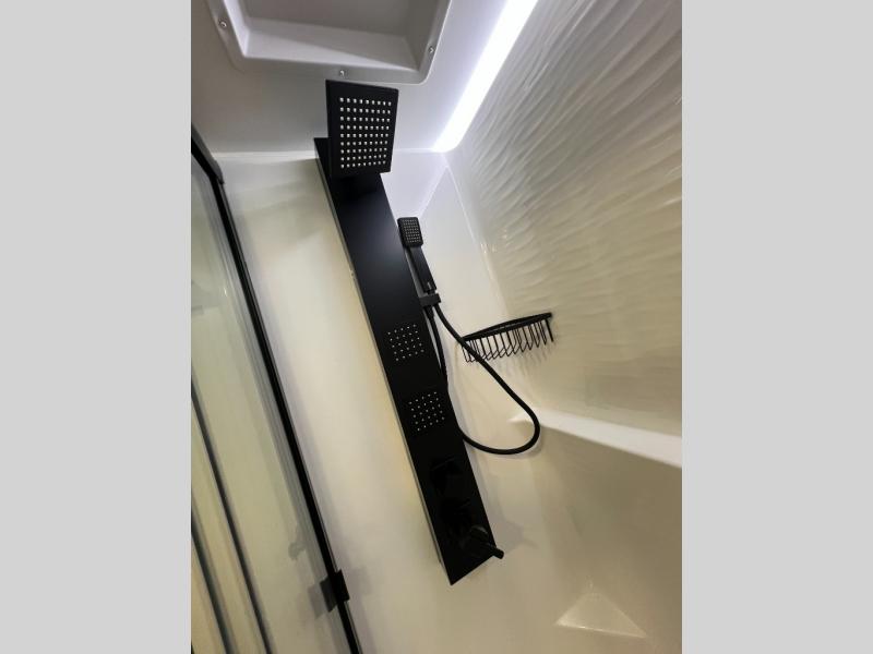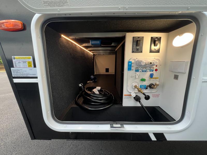 With any Model Z Air travel trailer by Brinkley, you will enjoy premium features at every turn. The industry-first low maintenance roof is sure to be appreciated, plus there are industry-first brass plumbing connections for excellent resistance to corrosion. The drop-frame chassis with over 100 cu. ft. of exterior storage will allow you to bring along camp gear galore, plus there are motion lighting and power outlets for added convenience! You'll also find two hot/cold showers outdoors, along with a 370-watt solar panel, a custom LP box with locked battery storage, and a premium utility center with a retractable 65' water hose to wash off mud from the lake. The interior is just as accommodating with its solid surface countertops, Brinkley CraftSense wood trim construction, integrated window screens and insulated blackout blinds, and the list of luxury features goes on!