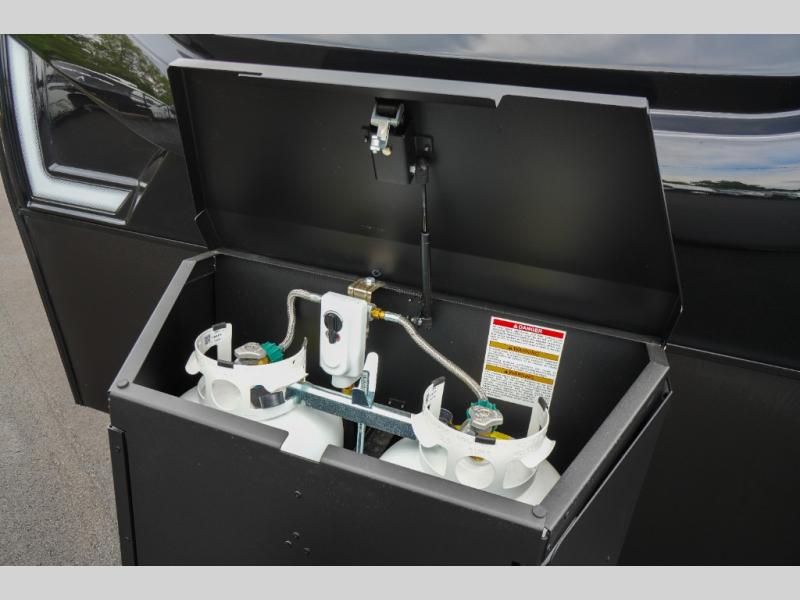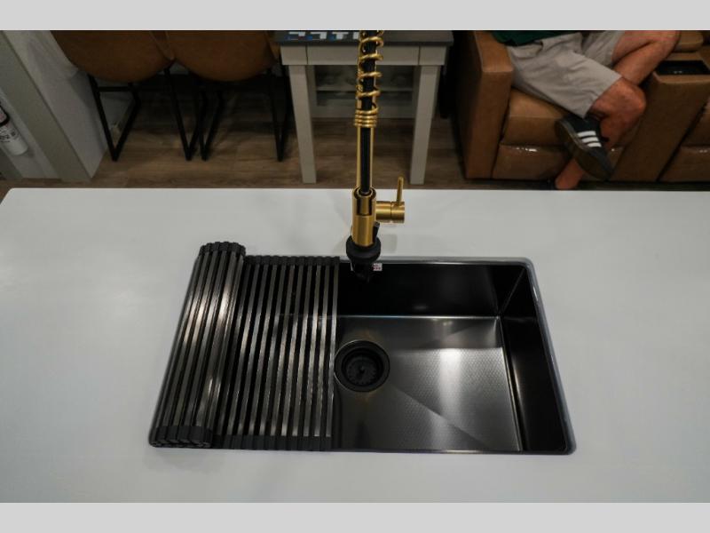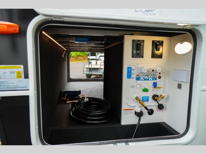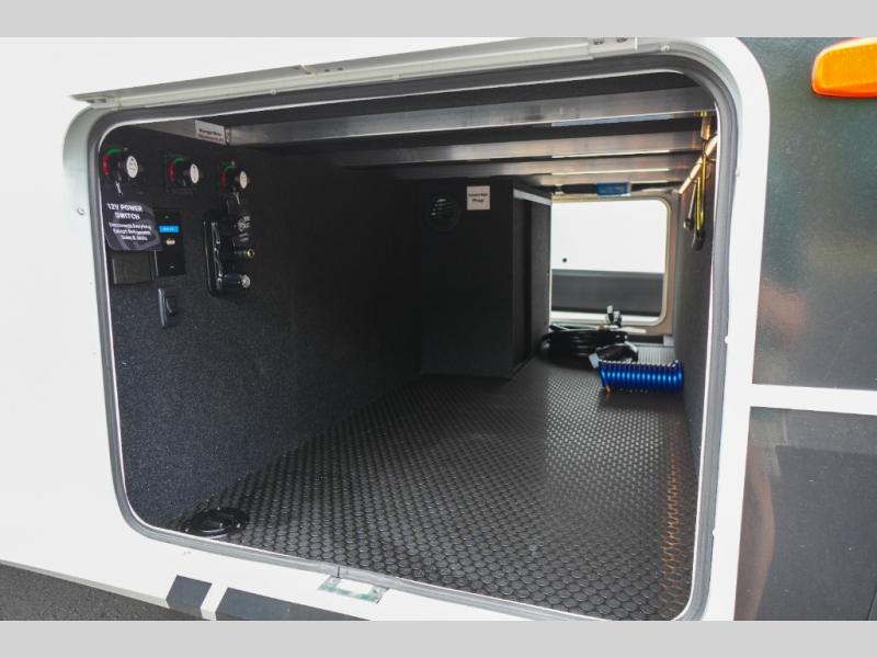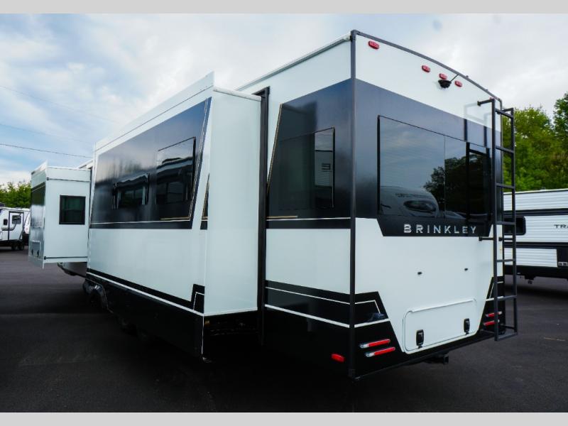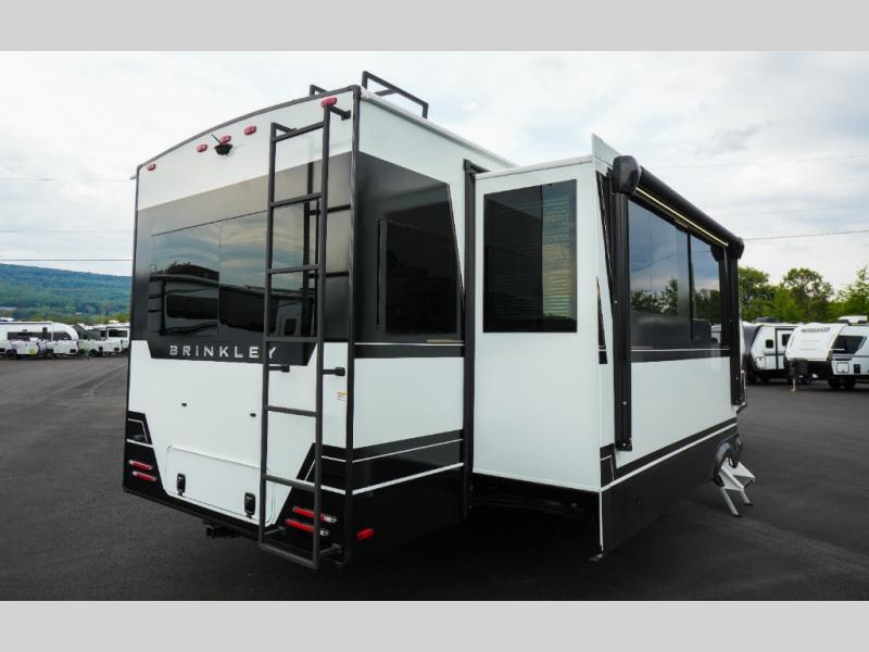 With any Model Z Air travel trailer by Brinkley, you will enjoy premium features at every turn. The industry-first low maintenance roof is sure to be appreciated, plus there are industry-first brass plumbing connections for excellent resistance to corrosion. The drop-frame chassis with over 100 cu. ft. of exterior storage will allow you to bring along camp gear galore, plus there are motion lighting and power outlets for added convenience! You'll also find two hot/cold showers outdoors, along with a 370-watt solar panel, a custom LP box with locked battery storage, and a premium utility center with a retractable 65' water hose to wash off mud from the lake. The interior is just as accommodating with its solid surface countertops, Brinkley CraftSense wood trim construction, integrated window screens and insulated blackout blinds, and the list of luxury features goes on!