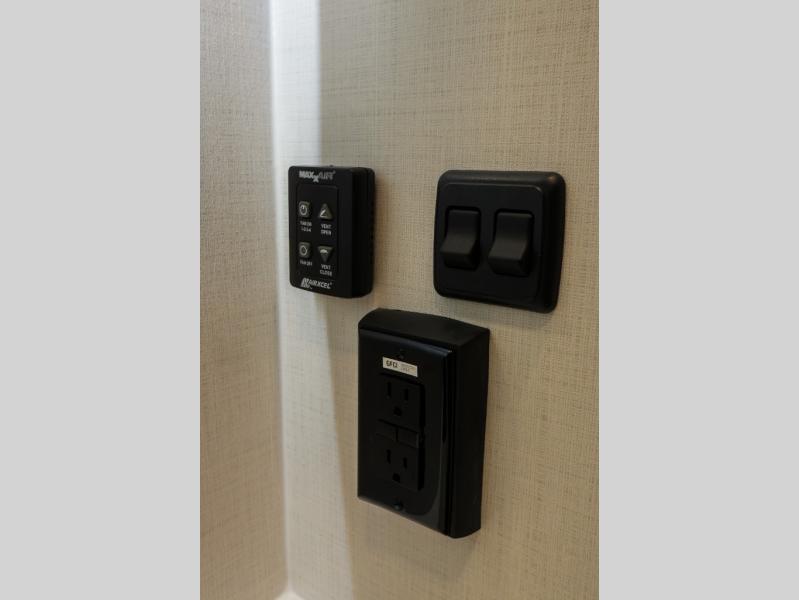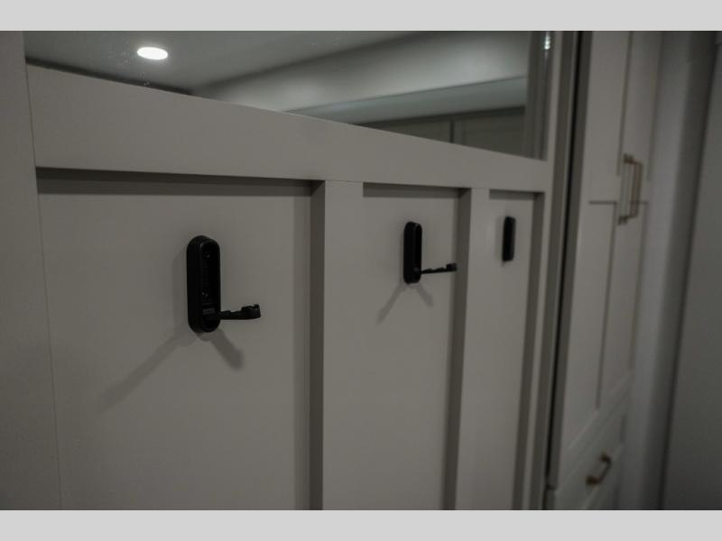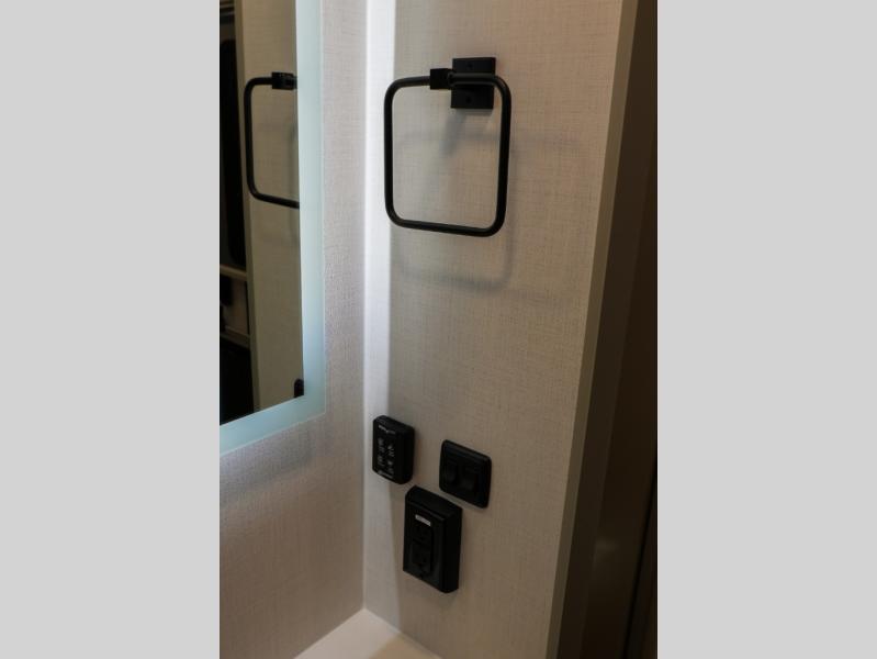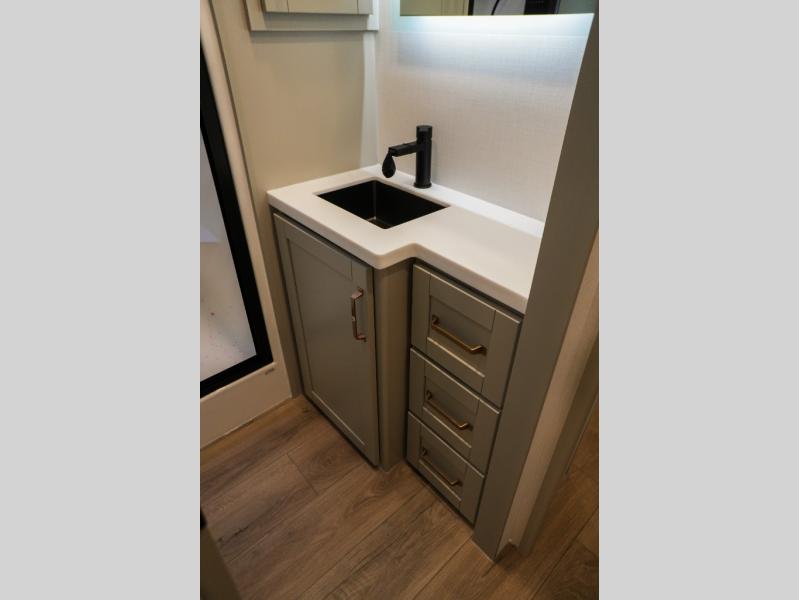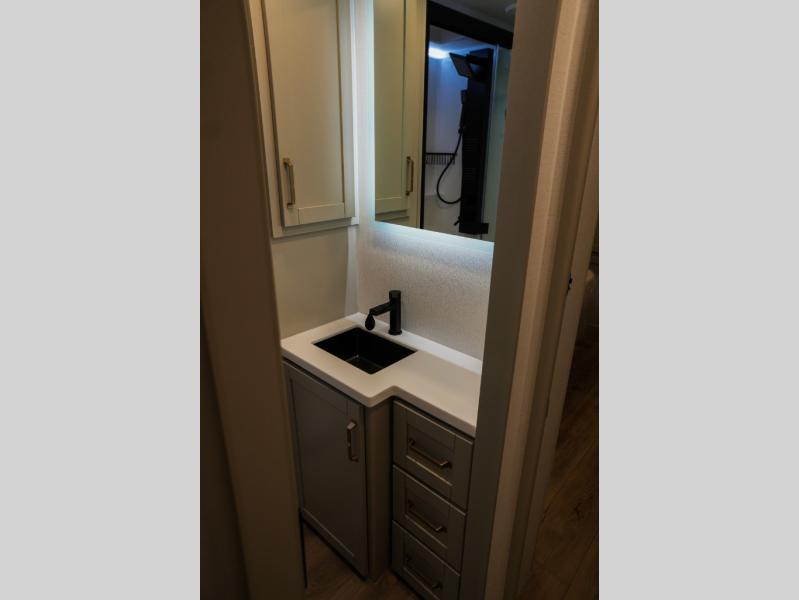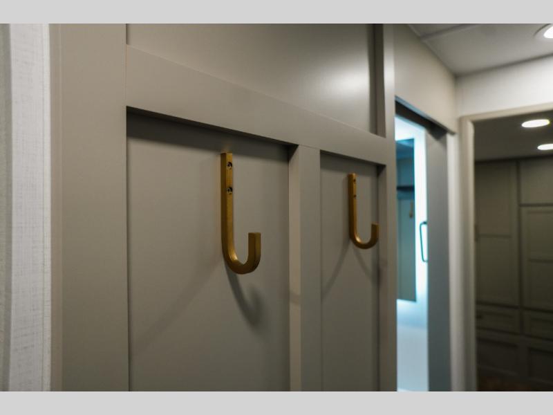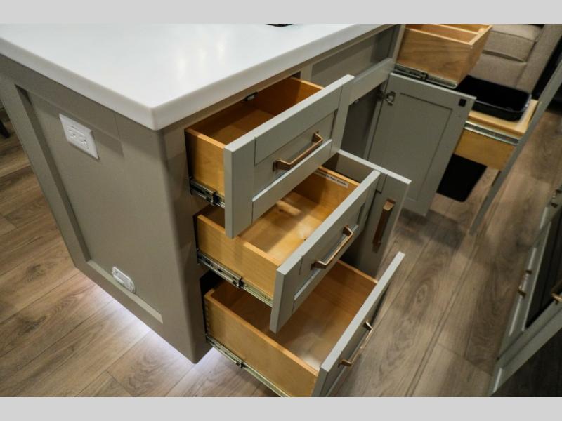 With any Model Z Air travel trailer by Brinkley, you will enjoy premium features at every turn. The industry-first low maintenance roof is sure to be appreciated, plus there are industry-first brass plumbing connections for excellent resistance to corrosion. The drop-frame chassis with over 100 cu. ft. of exterior storage will allow you to bring along camp gear galore, plus there are motion lighting and power outlets for added convenience! You'll also find two hot/cold showers outdoors, along with a 370-watt solar panel, a custom LP box with locked battery storage, and a premium utility center with a retractable 65' water hose to wash off mud from the lake. The interior is just as accommodating with its solid surface countertops, Brinkley CraftSense wood trim construction, integrated window screens and insulated blackout blinds, and the list of luxury features goes on!