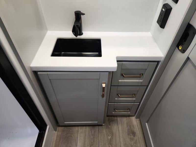 With any Model Z Air travel trailer by Brinkley, you will enjoy premium features at every turn. The industry-first low maintenance roof is sure to be appreciated, plus there are industry-first brass plumbing connections for excellent resistance to corrosion. The drop-frame chassis with over 100 cu. ft. of exterior storage will allow you to bring along camp gear galore, plus there are motion lighting and power outlets for added convenience! You'll also find two hot/cold showers outdoors, along with a 370-watt solar panel, a custom LP box with locked battery storage, and a premium utility center with a retractable 65' water hose to wash off mud from the lake. The interior is just as accommodating with its solid surface countertops, Brinkley CraftSense wood trim construction, integrated window screens and insulated blackout blinds, and the list of luxury features goes on!