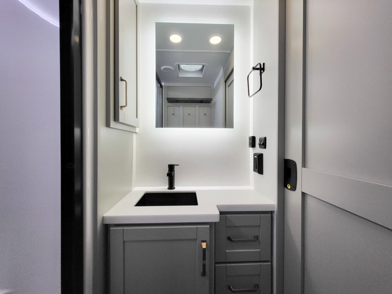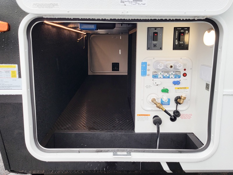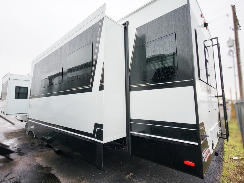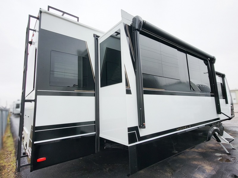 With any Model Z Air travel trailer by Brinkley, you will enjoy premium features at every turn. The industry-first low maintenance roof is sure to be appreciated, plus there are industry-first brass plumbing connections for excellent resistance to corrosion. The drop-frame chassis with over 100 cu. ft. of exterior storage will allow you to bring along camp gear galore, plus there are motion lighting and power outlets for added convenience! You'll also find two hot/cold showers outdoors, along with a 370-watt solar panel, a custom LP box with locked battery storage, and a premium utility center with a retractable 65' water hose to wash off mud from the lake. The interior is just as accommodating with its solid surface countertops, Brinkley CraftSense wood trim construction, integrated window screens and insulated blackout blinds, and the list of luxury features goes on!