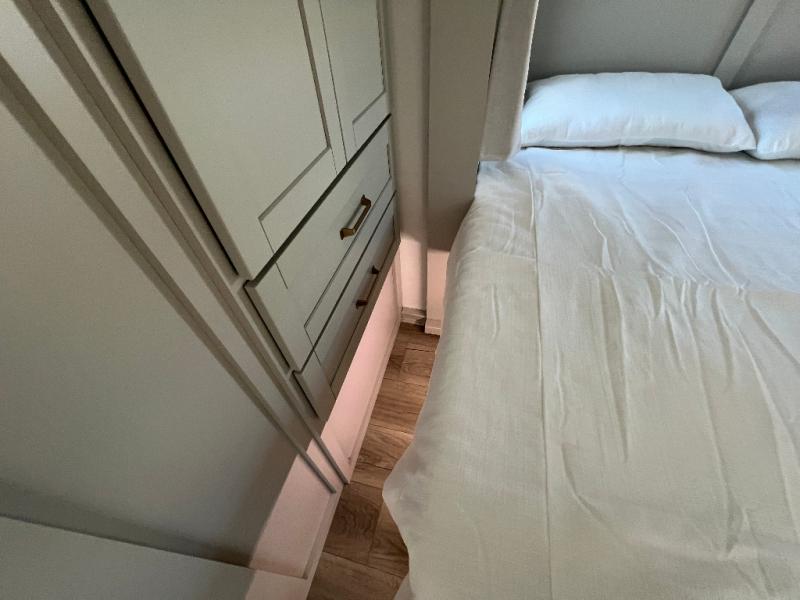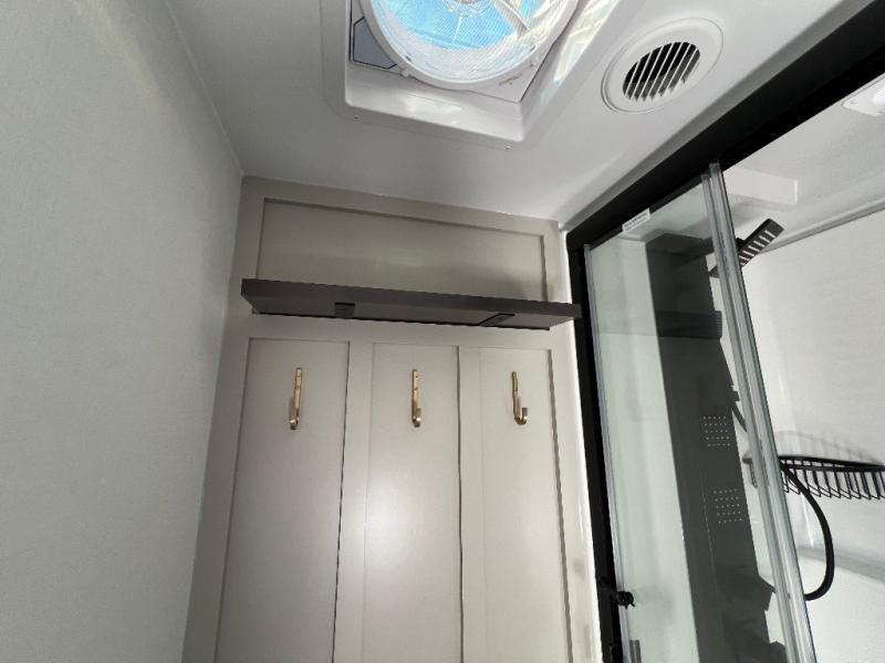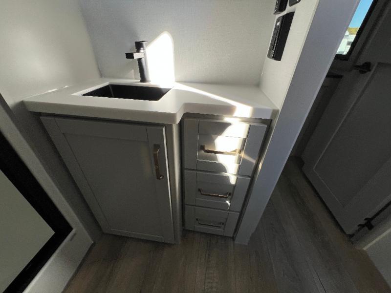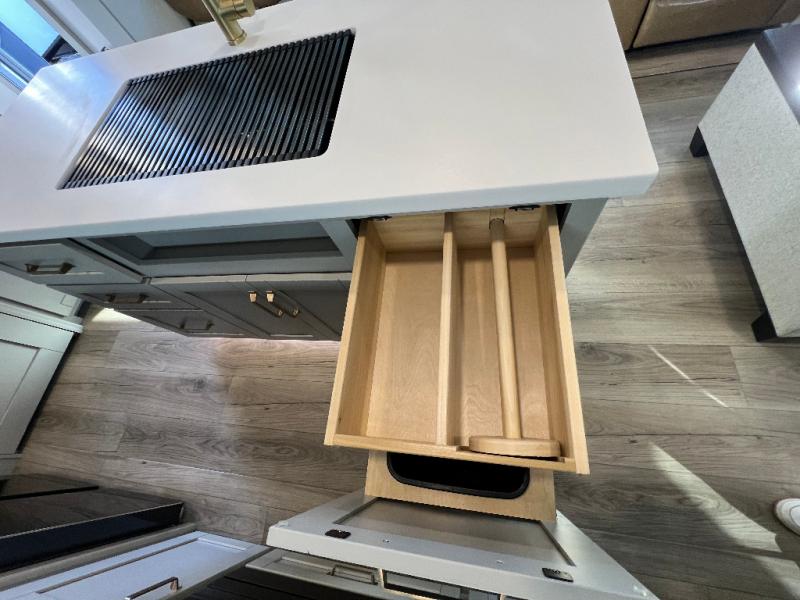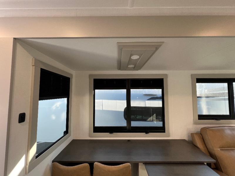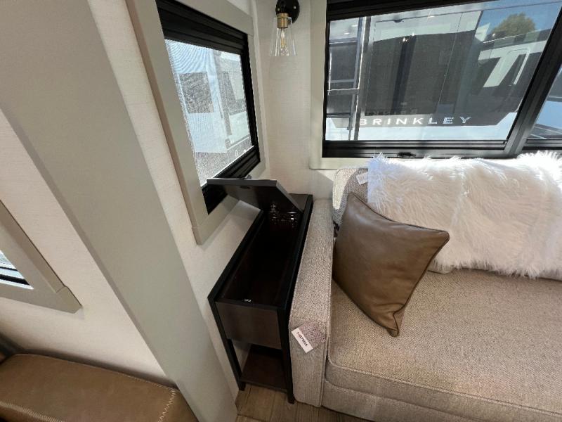 With any Model Z Air travel trailer by Brinkley, you will enjoy premium features at every turn. The industry-first low maintenance roof is sure to be appreciated, plus there are industry-first brass plumbing connections for excellent resistance to corrosion. The drop-frame chassis with over 100 cu. ft. of exterior storage will allow you to bring along camp gear galore, plus there are motion lighting and power outlets for added convenience! You'll also find two hot/cold showers outdoors, along with a 370-watt solar panel, a custom LP box with locked battery storage, and a premium utility center with a retractable 65' water hose to wash off mud from the lake. The interior is just as accommodating with its solid surface countertops, Brinkley CraftSense wood trim construction, integrated window screens and insulated blackout blinds, and the list of luxury features goes on!