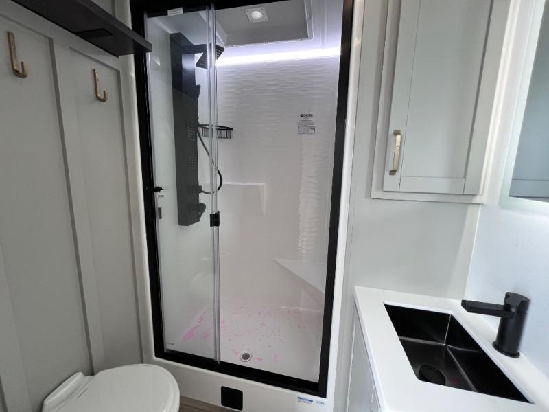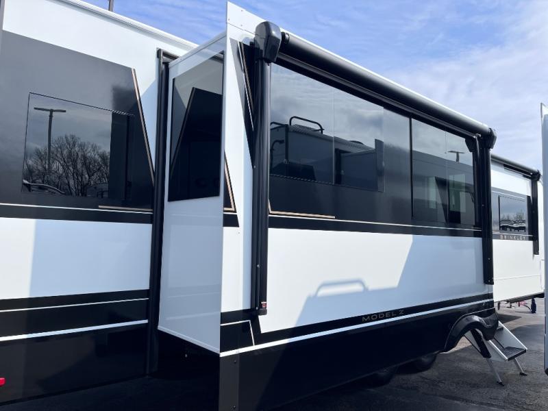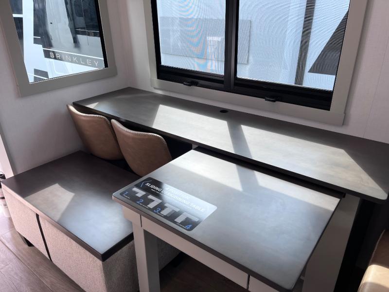 With any Model Z Air travel trailer by Brinkley, you will enjoy premium features at every turn. The industry-first low maintenance roof is sure to be appreciated, plus there are industry-first brass plumbing connections for excellent resistance to corrosion. The drop-frame chassis with a massive pass-through bay will allow you to bring along camp gear galore, plus there are motion lighting and power outlets for added convenience! You'll also find two hot/cold showers outdoors, along with a 370-watt solar panel and a premium utility center with a retractable 65' water hose to wash off mud from the lake. The interior is just as accommodating with its solid surface countertops, Brinkley CraftSense wood trim construction, integrated blackout window shades, and the list of luxury features goes on!