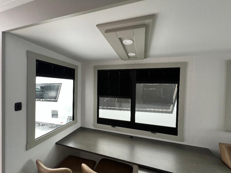With any Model Z Air travel trailer by Brinkley, you will enjoy premium features at every turn. The industry-first low maintenance roof is sure to be appreciated, plus there are industry-first brass plumbing connections for excellent resistance to corrosion. The drop-frame chassis with a massive pass-through bay will allow you to bring along camp gear galore, plus there are motion lighting and power outlets for added convenience! You'll also find two hot/cold showers outdoors, along with a 370-watt solar panel and a premium utility center with a retractable 65' water hose to wash off mud from the lake. The interior is just as accommodating with its solid surface countertops, Brinkley CraftSense wood trim construction, integrated blackout window shades, and the list of luxury features goes on!