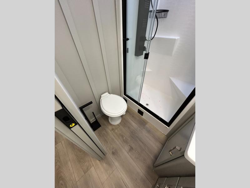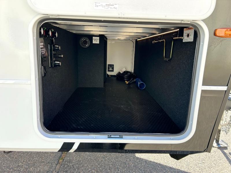 With any Model Z Air travel trailer by Brinkley, you will enjoy premium features at every turn. The industry-first low maintenance roof is sure to be appreciated, plus there are industry-first brass plumbing connections for excellent resistance to corrosion. The drop-frame chassis with a massive pass-through bay will allow you to bring along camp gear galore, plus there are motion lighting and power outlets for added convenience! You'll also find two hot/cold showers outdoors, along with a 370-watt solar panel and a premium utility center with a retractable 65' water hose to wash off mud from the lake. The interior is just as accommodating with its solid surface countertops, Brinkley CraftSense wood trim construction, integrated blackout window shades, and the list of luxury features goes on!