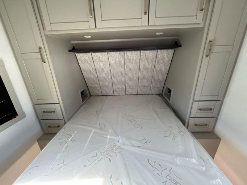 With any Model Z Air travel trailer by Brinkley, you will enjoy premium features at every turn. The industry-first low maintenance roof is sure to be appreciated, plus there are industry-first brass plumbing connections for excellent resistance to corrosion. The drop-frame chassis with a massive pass-through bay will allow you to bring along camp gear galore, plus there are motion lighting and power outlets for added convenience! You'll also find two hot/cold showers outdoors, along with a 370-watt solar panel and a premium utility center with a retractable 65' water hose to wash off mud from the lake. The interior is just as accommodating with its solid surface countertops, Brinkley CraftSense wood trim construction, integrated blackout window shades, and the list of luxury features goes on!