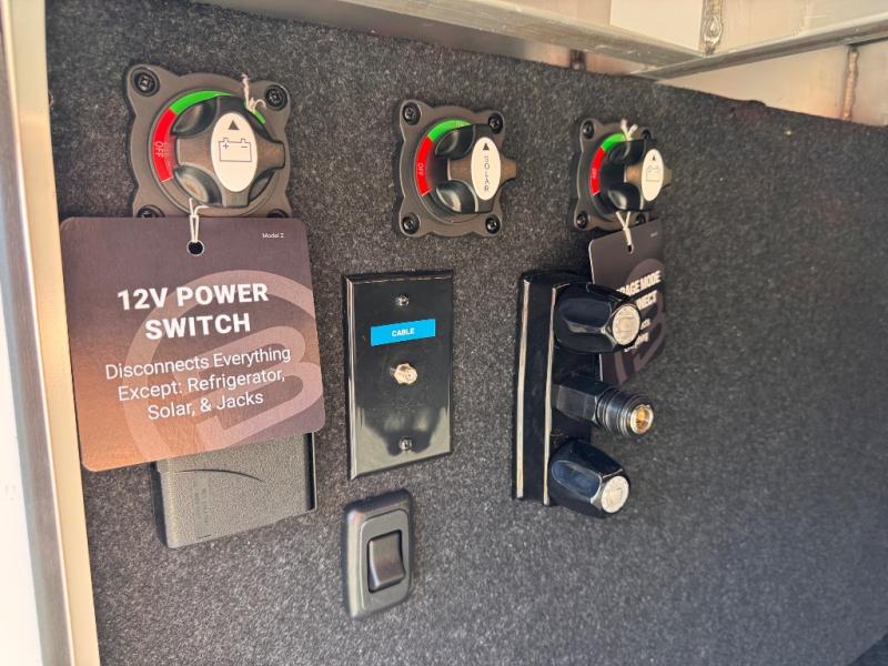With any Model Z Air travel trailer by Brinkley, you will enjoy premium features at every turn. The industry-first low maintenance roof is sure to be appreciated, plus there are industry-first brass plumbing connections for excellent resistance to corrosion. The drop-frame chassis with a massive pass-through bay will allow you to bring along camp gear galore, plus there are motion lighting and power outlets for added convenience! You'll also find two hot/cold showers outdoors, along with a 370-watt solar panel and a premium utility center with a retractable 65' water hose to wash off mud from the lake. The interior is just as accommodating with its solid surface countertops, Brinkley CraftSense wood trim construction, integrated blackout window shades, and the list of luxury features goes on!