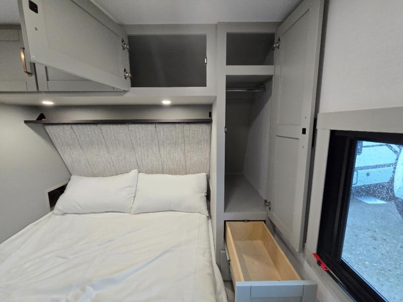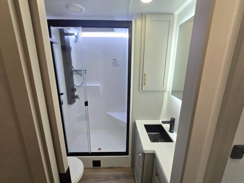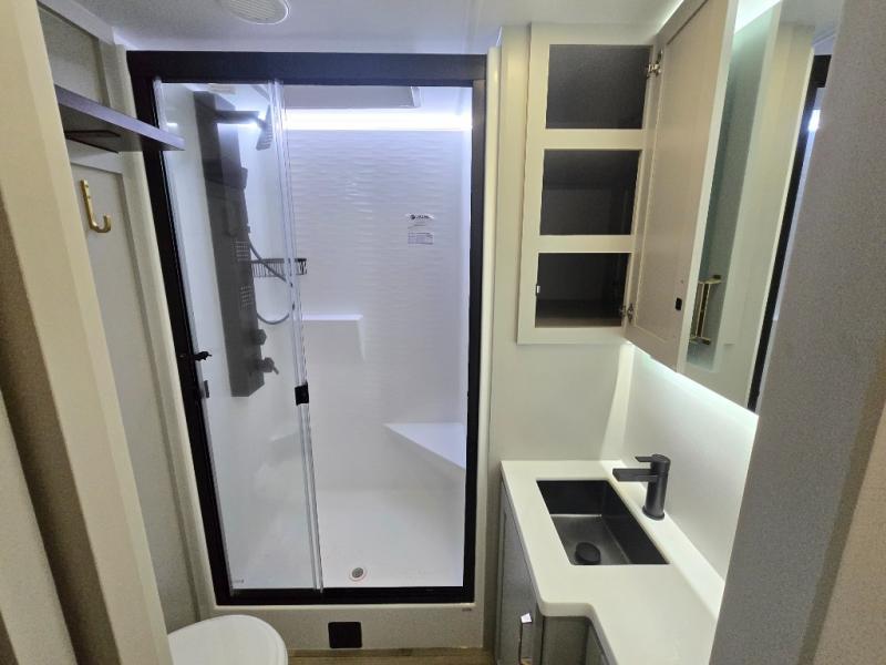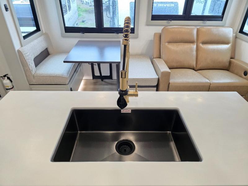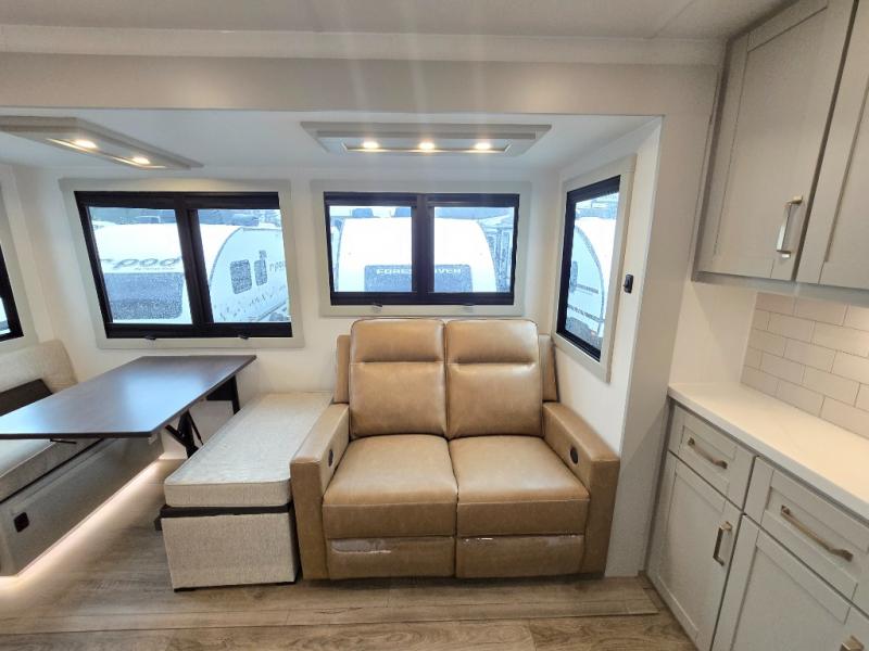 With any Model Z Air travel trailer by Brinkley, you will enjoy premium features at every turn. The industry-first low maintenance roof is sure to be appreciated, plus there are industry-first brass plumbing connections for excellent resistance to corrosion. The drop-frame chassis with a massive pass-through bay will allow you to bring along camp gear galore, plus there are motion lighting and power outlets for added convenience! You'll also find two hot/cold showers outdoors, along with a 370-watt solar panel and a premium utility center with a retractable 65' water hose to wash off mud from the lake. The interior is just as accommodating with its solid surface countertops, Brinkley CraftSense wood trim construction, integrated blackout window shades, and the list of luxury features goes on!