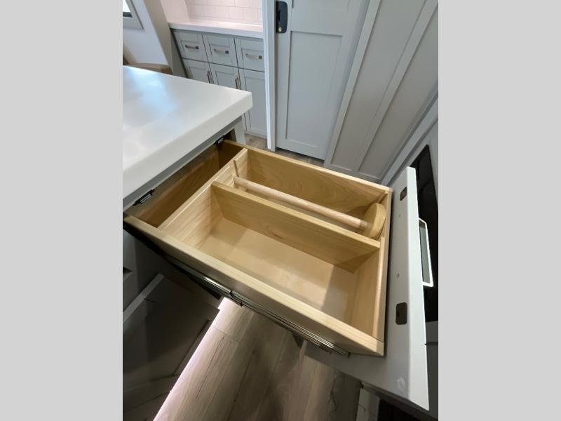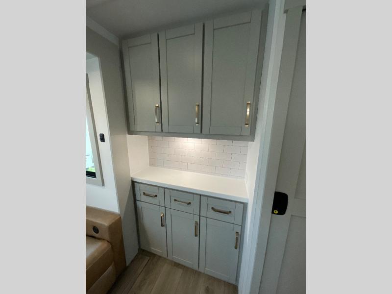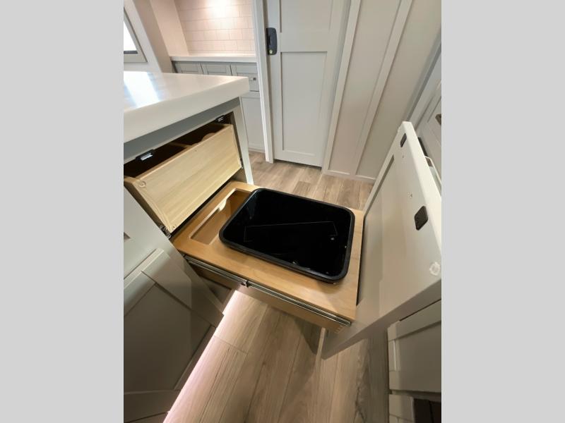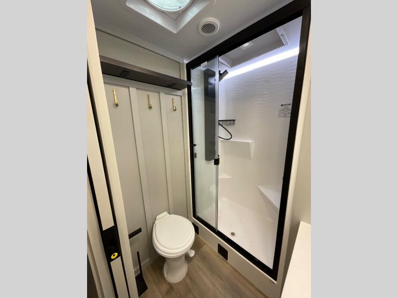 With any Model Z Air travel trailer by Brinkley, you will enjoy premium features at every turn. The industry-first low maintenance roof is sure to be appreciated, plus there are industry-first brass plumbing connections for excellent resistance to corrosion. The drop-frame chassis with a massive pass-through bay will allow you to bring along camp gear galore, plus there are motion lighting and power outlets for added convenience! You'll also find two hot/cold showers outdoors, along with a 370-watt solar panel and a premium utility center with a retractable 65' water hose to wash off mud from the lake. The interior is just as accommodating with its solid surface countertops, Brinkley CraftSense wood trim construction, integrated blackout window shades, and the list of luxury features goes on!