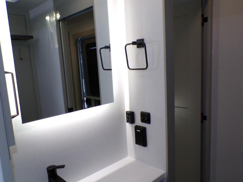 With any Model Z Air travel trailer by Brinkley, you will enjoy premium features at every turn. The industry-first low maintenance roof is sure to be appreciated, plus there are industry-first brass plumbing connections for excellent resistance to corrosion. The drop-frame chassis with a massive pass-through bay will allow you to bring along camp gear galore, plus there are motion lighting and power outlets for added convenience! You'll also find two hot/cold showers outdoors, along with a 370-watt solar panel and a premium utility center with a retractable 65' water hose to wash off mud from the lake. The interior is just as accommodating with its solid surface countertops, Brinkley CraftSense wood trim construction, integrated blackout window shades, and the list of luxury features goes on!