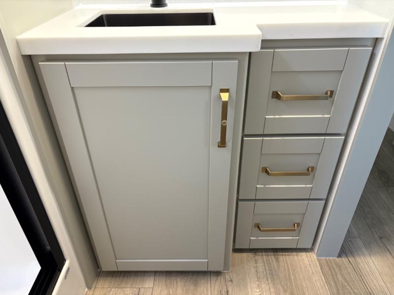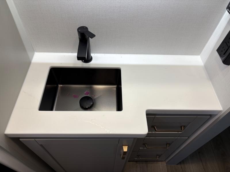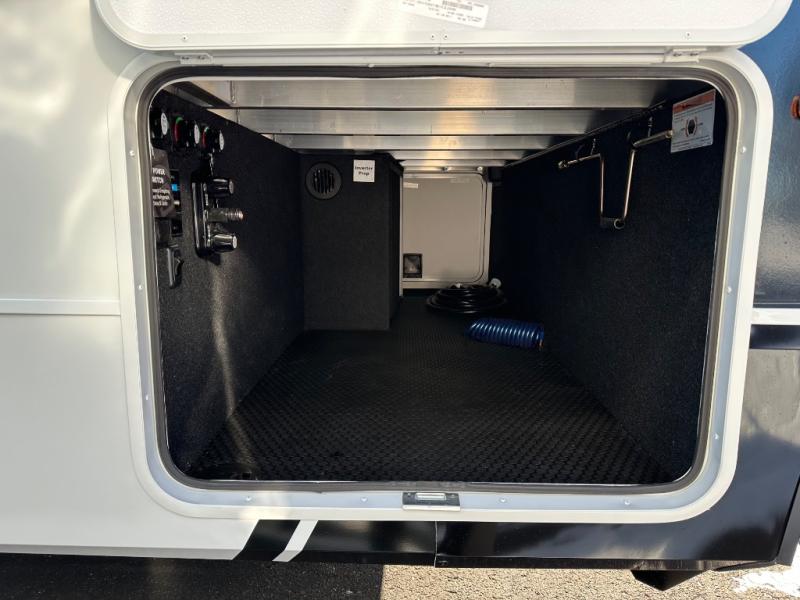 With any Model Z Air travel trailer by Brinkley, you will enjoy premium features at every turn. The industry-first low maintenance roof is sure to be appreciated, plus there are industry-first brass plumbing connections for excellent resistance to corrosion. The drop-frame chassis with a massive pass-through bay will allow you to bring along camp gear galore, plus there are motion lighting and power outlets for added convenience! You'll also find two hot/cold showers outdoors, along with a 370-watt solar panel and a premium utility center with a retractable 65' water hose to wash off mud from the lake. The interior is just as accommodating with its solid surface countertops, Brinkley CraftSense wood trim construction, integrated blackout window shades, and the list of luxury features goes on!