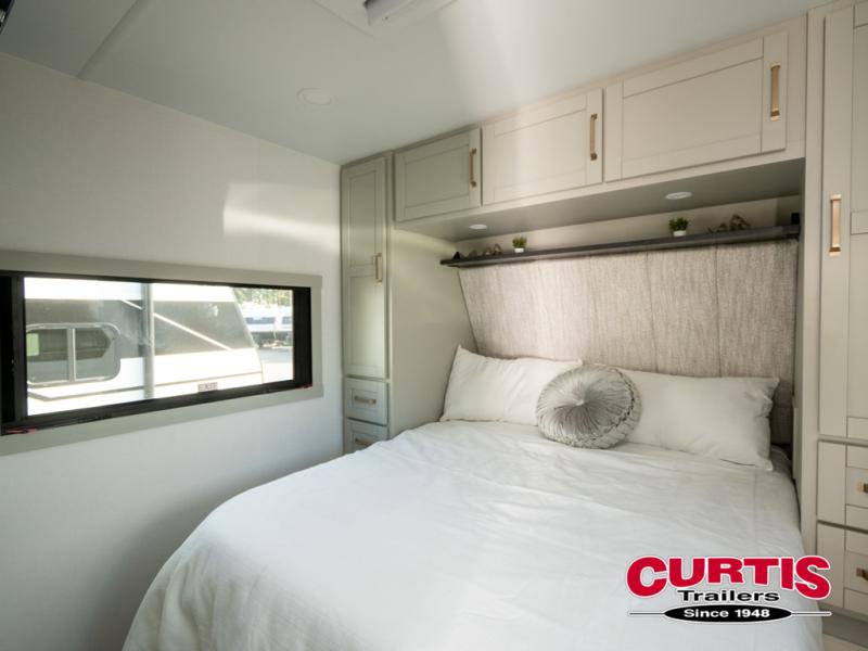 With any Model Z Air travel trailer by Brinkley, you will enjoy premium features at every turn. The industry-first low maintenance roof is sure to be appreciated, plus there are industry-first brass plumbing connections for excellent resistance to corrosion. The drop-frame chassis with a massive pass-through bay will allow you to bring along camp gear galore, plus there are motion lighting and power outlets for added convenience! You'll also find two hot/cold showers outdoors, along with a 370-watt solar panel and a premium utility center with a retractable 65' water hose to wash off mud from the lake. The interior is just as accommodating with its solid surface countertops, Brinkley CraftSense wood trim construction, integrated blackout window shades, and the list of luxury features goes on!