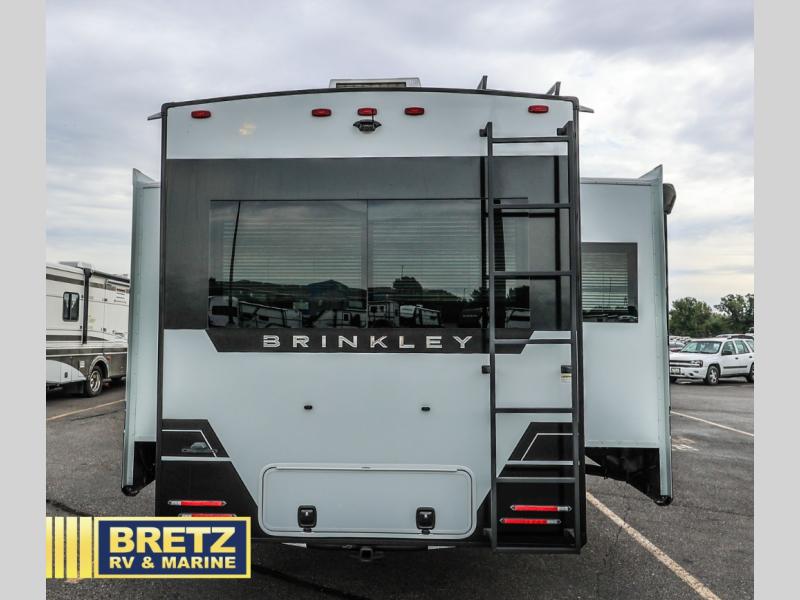 The Brinkley mid-profile Model Z fifth wheels bring you clean lines and an upscale look with plenty of style and exciting new features like the industry first brass plumbing connections. These units also feature an automotive grade front cap, plenty of exterior storage, dual exterior hot and cold showers, and wide stance leveling jacks for easy set up. Residential frameless windows provide a clean look and beautiful views, and ample electrical outlets and 6 USB/USB-C outlets allow all of your electronics and appliances to easily be used and charged.