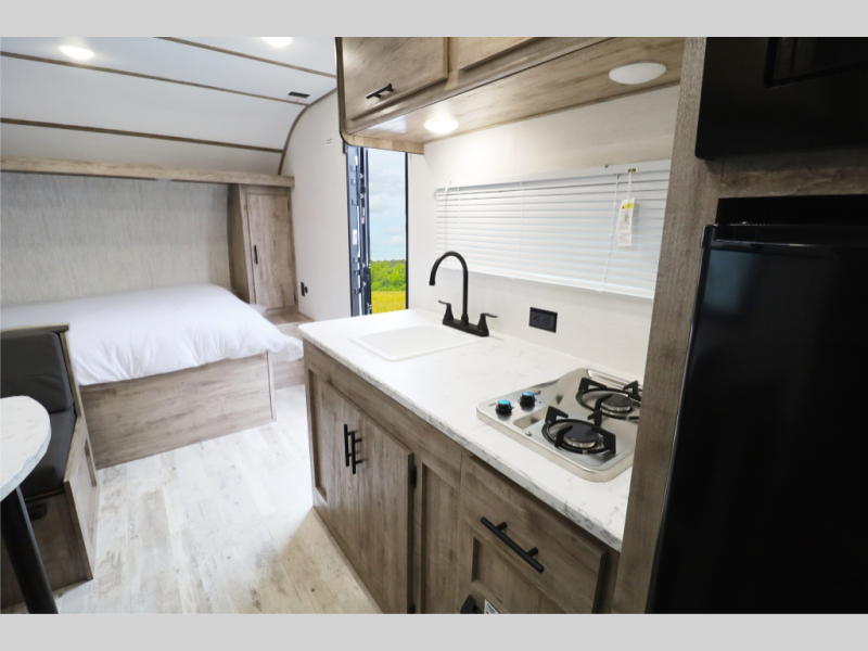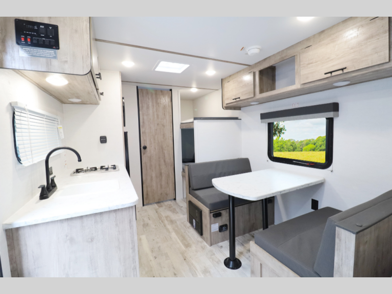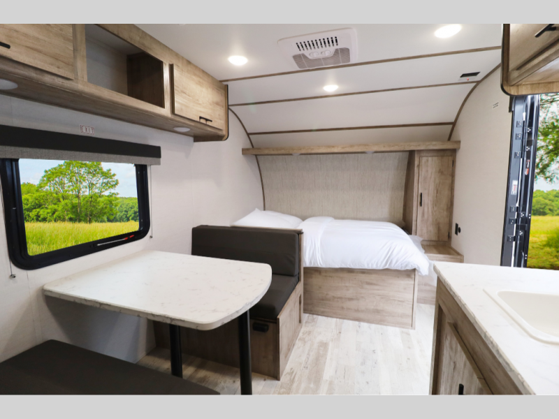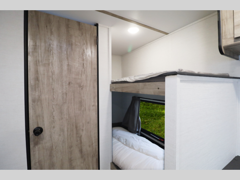 The 2026 Grand River Classic 17BHG delivers big family function in a small, easy-to-tow package. At just 2,810 lbs dry and 17 feet long, this bunkhouse travel trailer is perfect for first-time RVers and weekend explorers. It sleeps up to 5 with double bunks, a convertible dinette, and a front queen bed — all within a smart, space-saving floorplan. A rear bath, full galley with microwave and 2-burner cooktop, and 23/36/36 gal tanks make camping simple, while its 8' width and compact design ensure stress-free towing with SUVs or light trucks.
