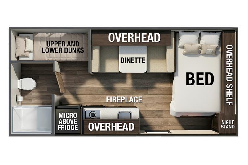 Sleeps: Up to 5 (Queen + Bunks + Dinette)