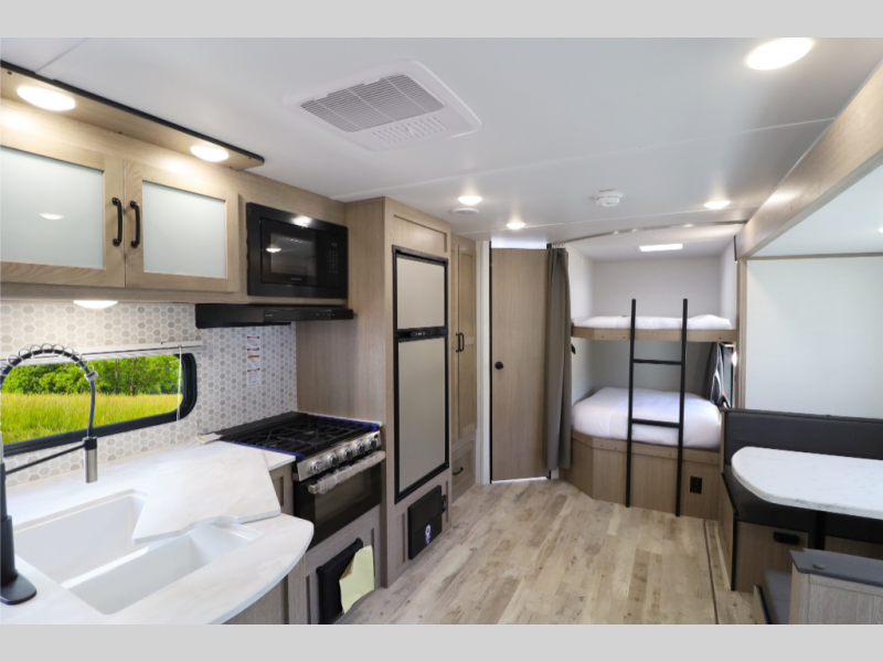 Double Bunks, Double Comfort — Full-size rear bunks sleep kids or guests with ease, each rated for 250 lbs.