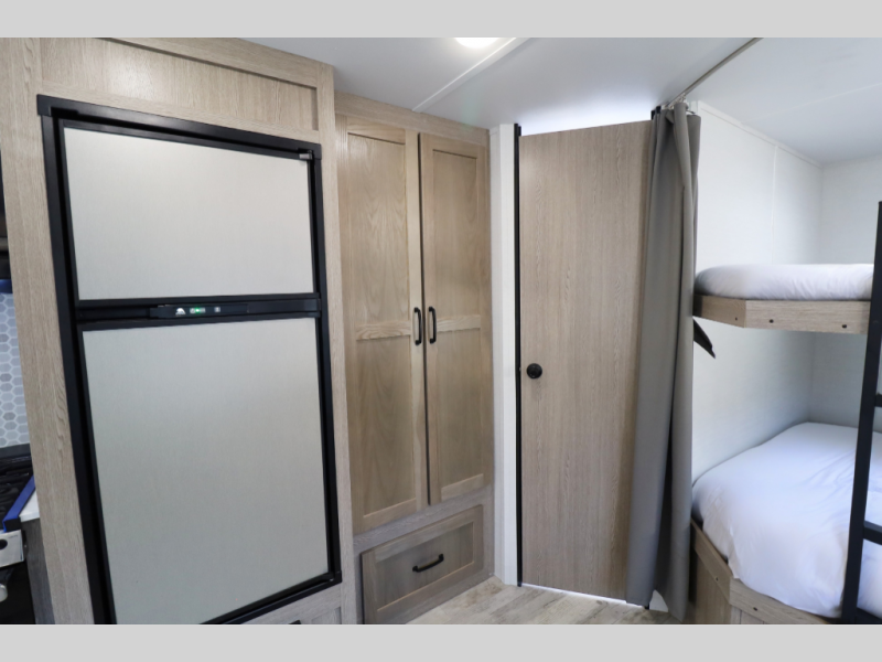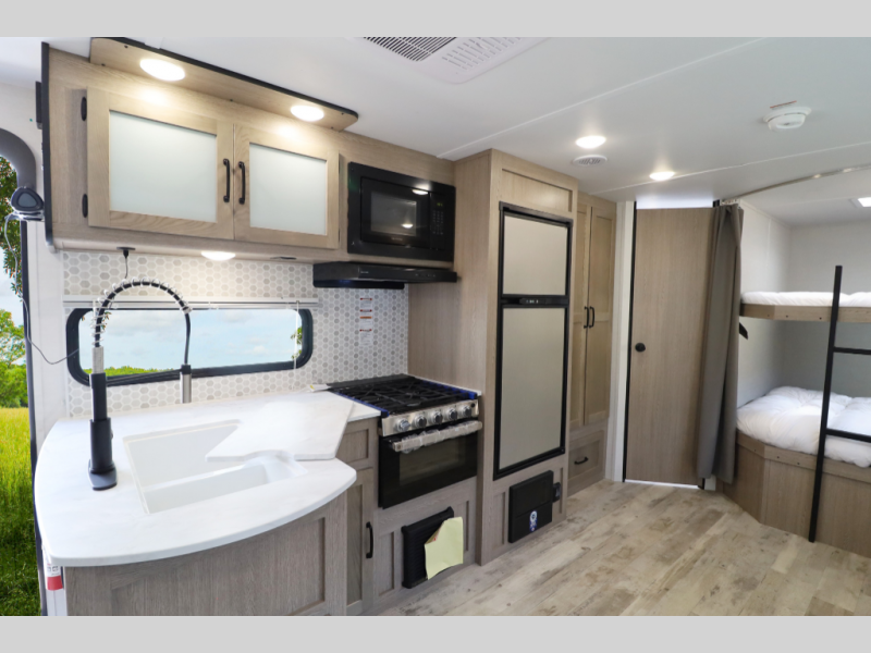 Spacious, family-friendly, and built for effortless weekends — the 2026 Grand River Classic 27BHS offers a full-sized super slide, double-over-double bunks, and a walk-around queen bed in a lightweight, easy-towing package. With a dry weight of 5,177 lbs and an overall length of 30', this trailer is towable by many half-ton trucks yet packs room to comfortably sleep up to 10. Thoughtful features include a 15K BTU A/C, tankless hot water heater, Bluetooth soundbar, and a full 3-burner range with oven, all wrapped in a durable aluminum exterior.