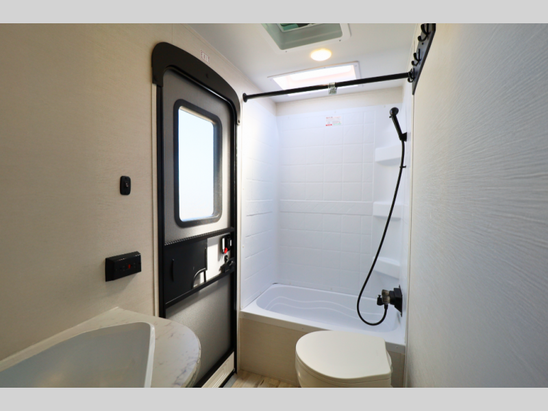 Standard features like a tankless water heater, exterior shower, and Bluetooth soundbar make every trip smoother.