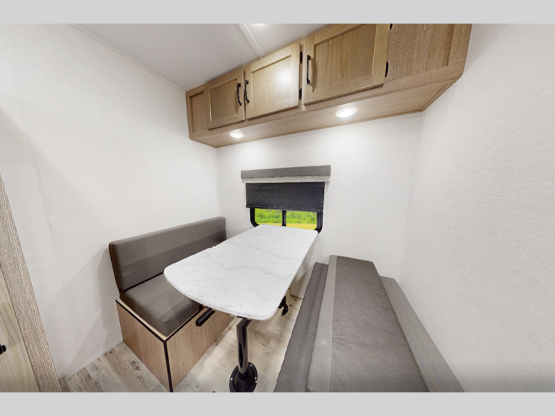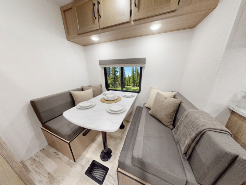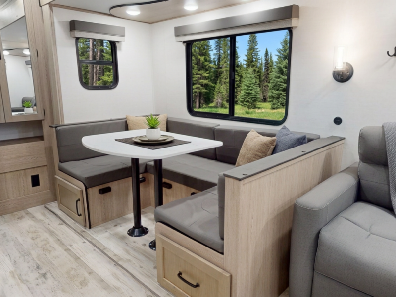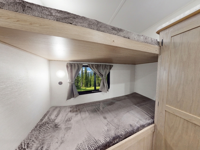 Bunkhouse That Grows With Them — Dedicated kid zone up front with bunks and a convertible dinette—games by day, real sleep space by night.