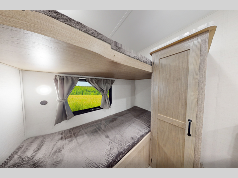 Families who want separate kid space without giving up a private king suite. Seasonal and extended-weekend campers who love patio-door convenience. Owners stepping up from a smaller bunkhouse who want more room without going to a destination trailer.