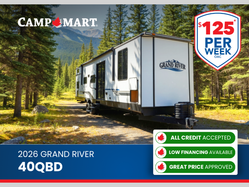 Make your favorite campsite feel like a second home. The 2026 Grand River Classic 40QBD blends a private family bunkhouse layout with a sliding patio door, a spacious super slide, and a front queen bedroom. The residential kitchen includes a double-door refrigerator/freezer, a range with oven, microwave, and ample pantry storage. Comfort is built in with a ducted A/C system, tankless water heater, and a powerful 35,000 BTU furnace. Large-capacity tanks, 50-amp service, and dual propane cylinders make the 40QBD a smart choice for extended stays.