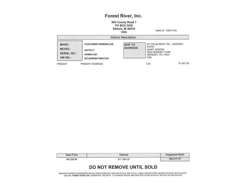 Coachmen Adrenaline LT toy hauler 21LT highlights: