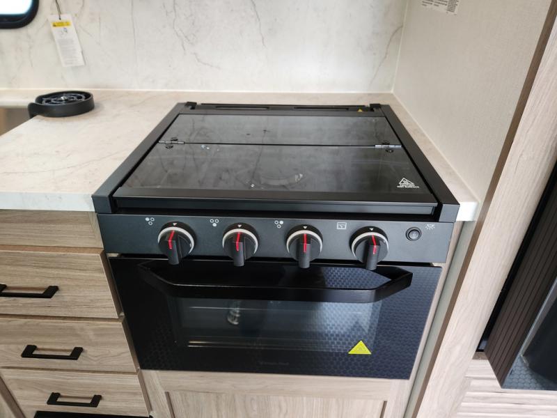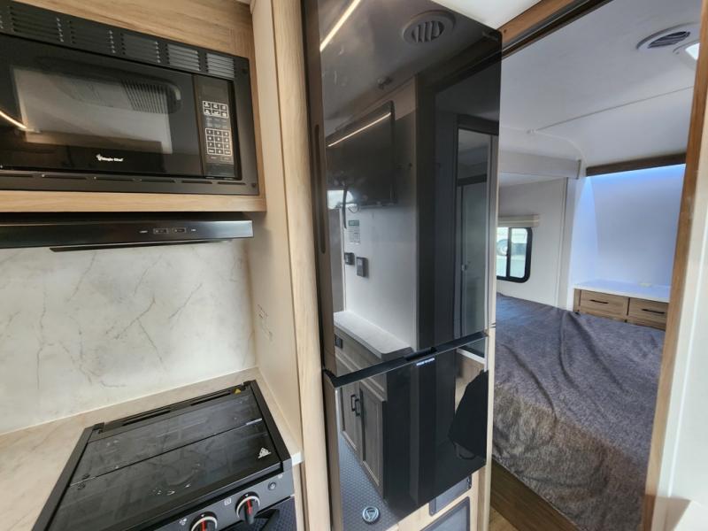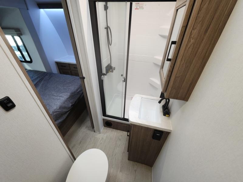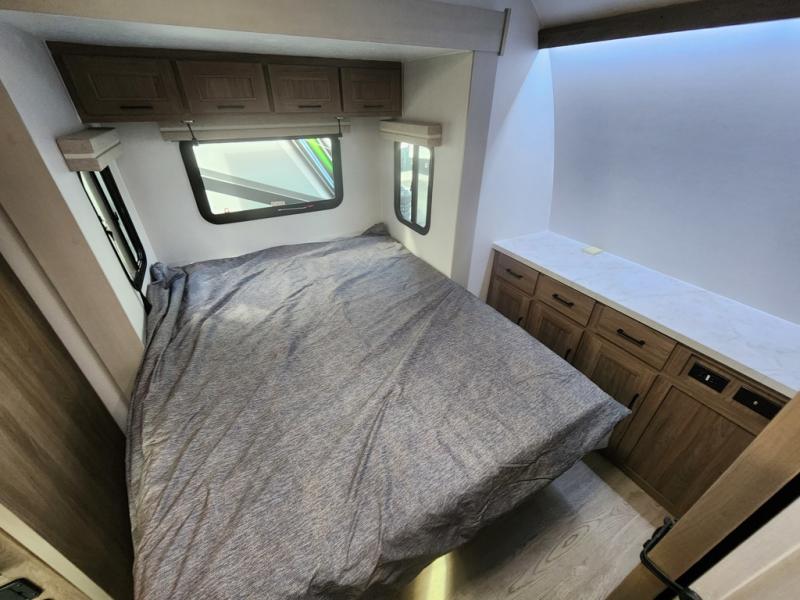 Load up your toys into 13' 8" of cargo space, your clothes in the dresser, your gear in the overhead cabinets, and your food in the refrigerator for a weekend or longer trail ride! The chef of the group can prepare breakfast on the three burner cooktop that includes an oven or use the microwave, and there is plenty of storage space in the overhead cabinets for kitchen necessities and snacks. The dual entry bath and a master bedroom are both along the front of the trailer giving you privacy and convenience. When it's finally time to call it a night, you will enjoy the queen bed slide and your guests can convert the two roll-over sofas for a great night's rest, and there is a queen bed electric lift option if you need more sleeping space.