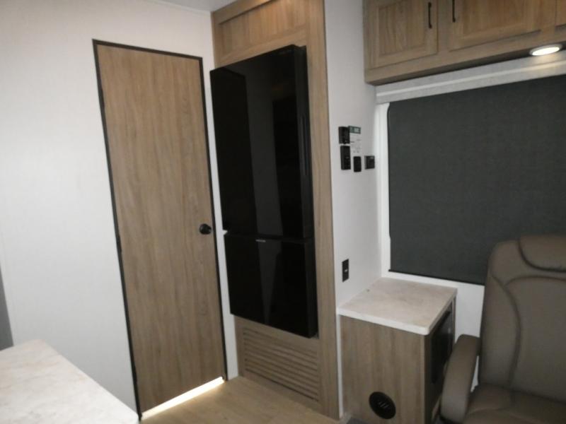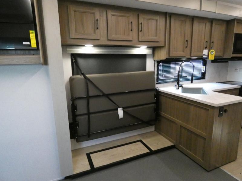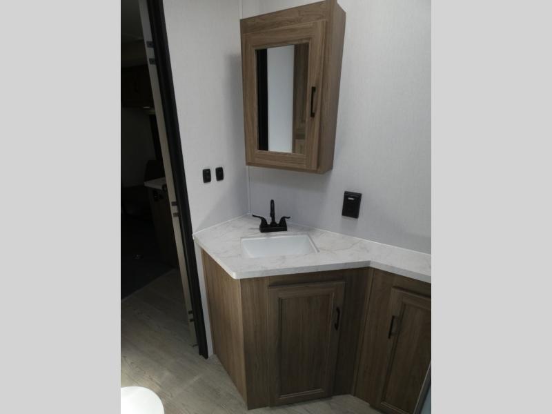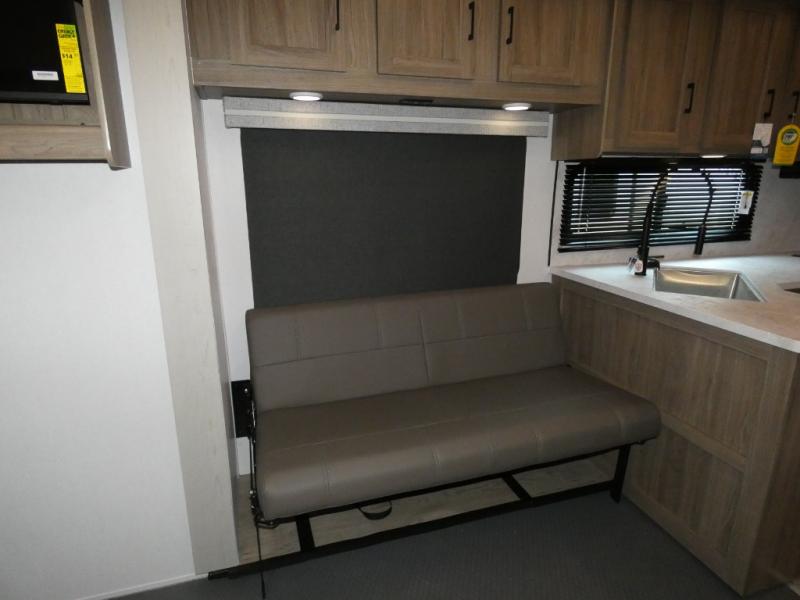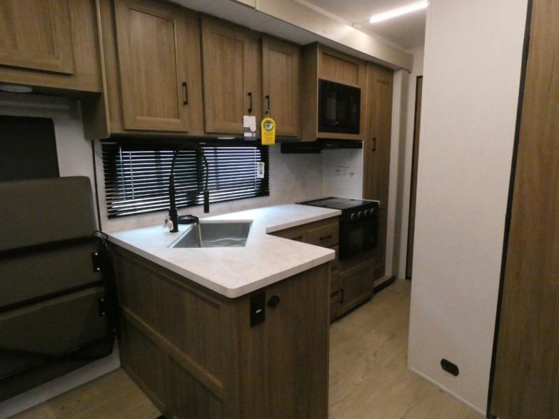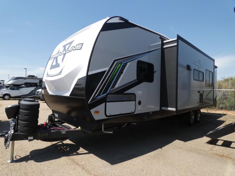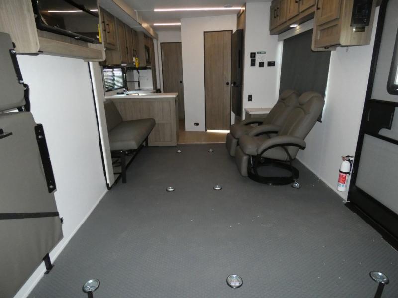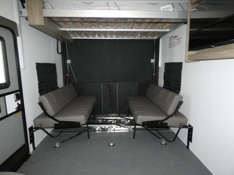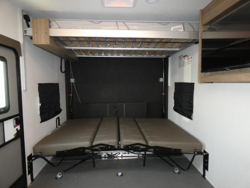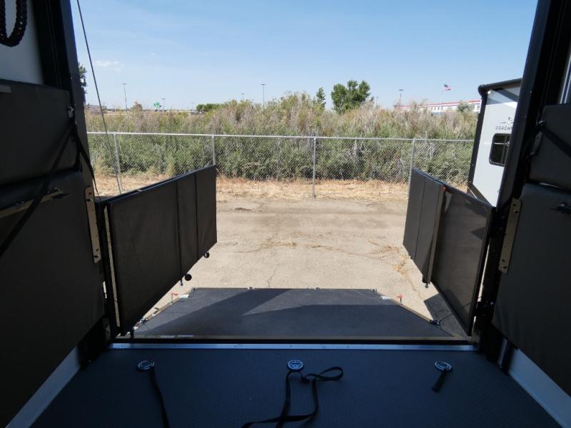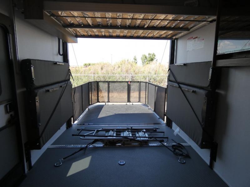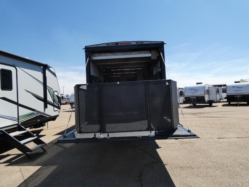 Looking for a spacious travel trailer that you can carry your toys to and from the off-road park and stay overnight in comfort? Well this might just fit the bill! You will appreciate the 15' 7" cargo space for all your toys, and the large slide out with a flip-up slide floor door will provide extra interior space. The chef of the family or group can prepare dinner on the three burner cooktop or use the microwave, and the double entry bath includes plenty of counter space that will come in handy when you're getting ready each day. This trailer also includes dual entry doors; one into the garage area and one into the front master bedroom with a king bed for your convenience. You will also find a rear pull down screen, pull-down roller night shades to be able to sleep in late, and a solar package to help you stay off-grid.