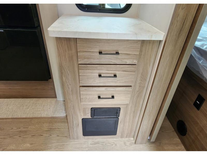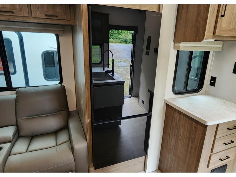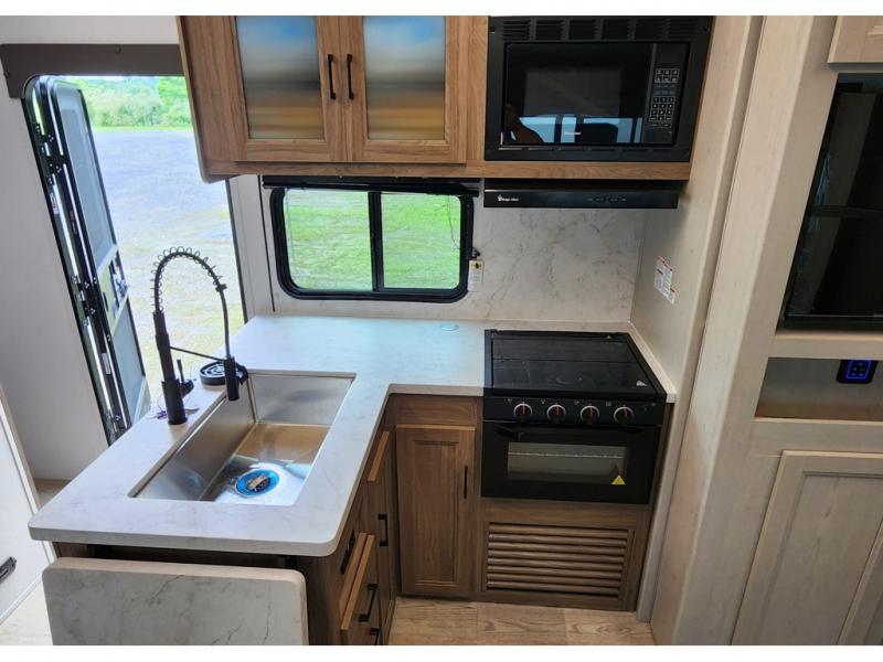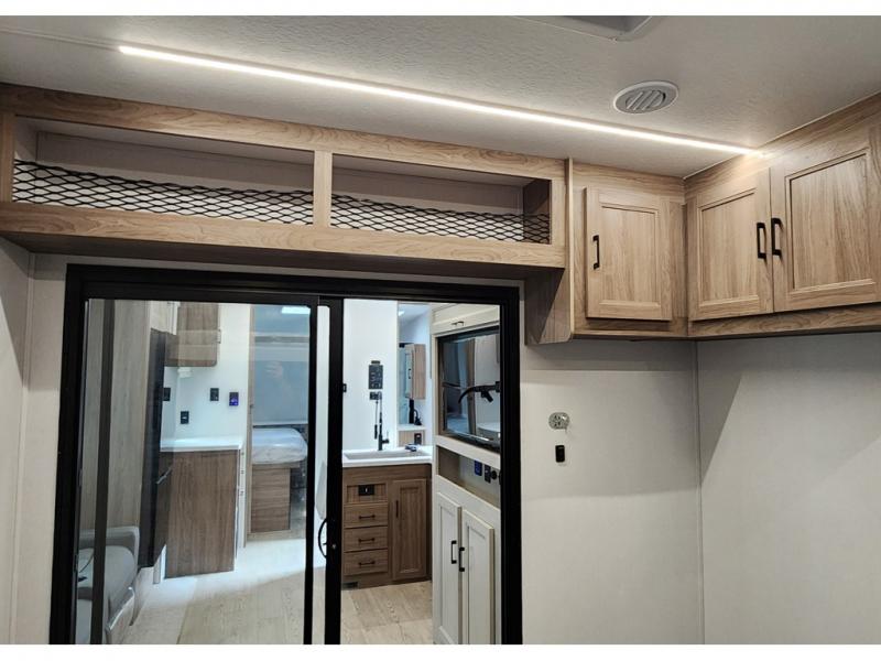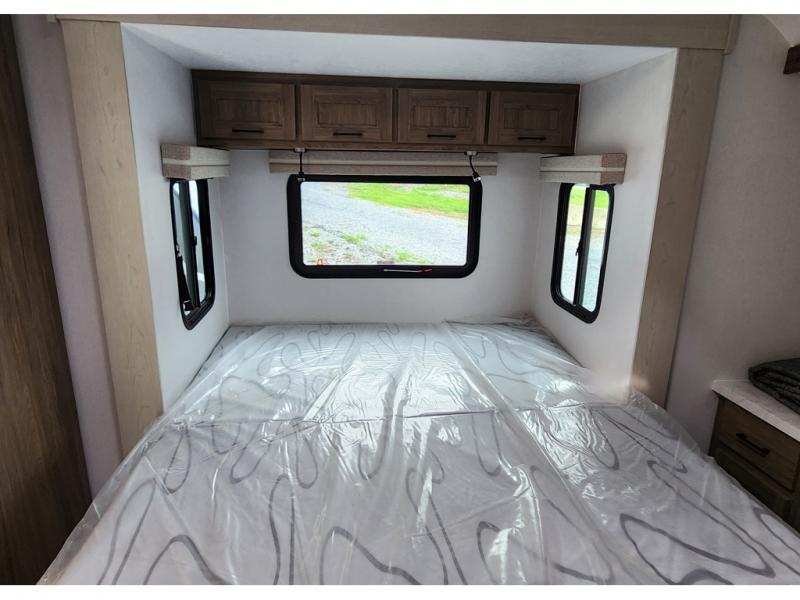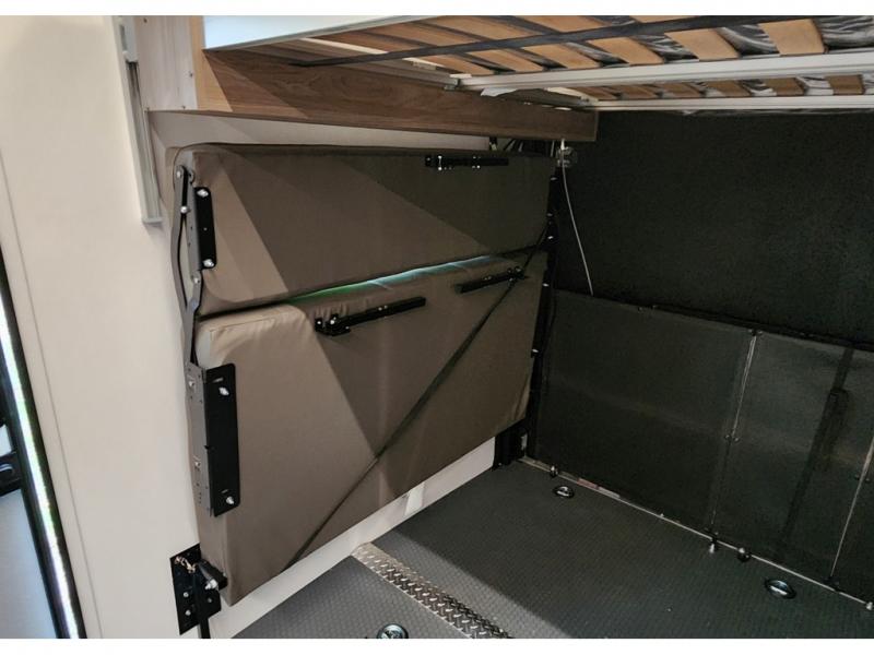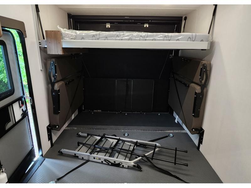 Looking for 13' of toy parking space, and sleeping space for six? You are going to love this model! You will appreciate the large cargo area for all your toys, and the extra sleeping space for family and friends with the roll over sofas converted and the overhead queen bed lift dropped down in the garage area. And the queen bed slide in the front master bedroom will be perfect for the owners. The chef of the family or group can prepare dinner on the three burner cooktop or use the microwave, and the double entry bath is conveniently located just inside the main side entry and includes a nice size shower, vanity with a sink and an overhead medicine cabinet. This toy hauler also includes dual entry/exit doors with the second one into the garage area. You will also find a rear pull down screen in the garage, pull-down roller night shades to be able to sleep in late, and a solar package to help you stay off-grid.