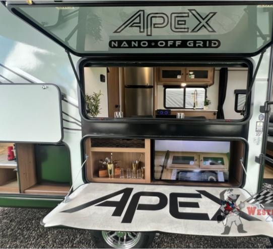 You will find comfort, convenience, and a sturdy construction with each of these Coachmen RV Apex Nano travel trailers! They are held together with an aluma-cage construction, an I-beam chassis, plus vacuum-bonded laminated dual Azdel fiberglass walls for double the protection against the elements. The 400-watt solar panel with a 30-amp control charger is included, along with two 20 lb. LP tanks, a high velocity power roof vent, plus 12V outlets to keep you powered up. More exterior features include a hot/cold shower, four stabilizer jacks, a power awning with LED lighting, and radius thumb latch baggage doors to easily pack and unload your gear. You will love the interior of your Apex Nano with Congoleum residential flooring, one-piece seamless edge countertops, matte black hardware in the galley, and a hand-crafted wood medicine cabinet in the bath.